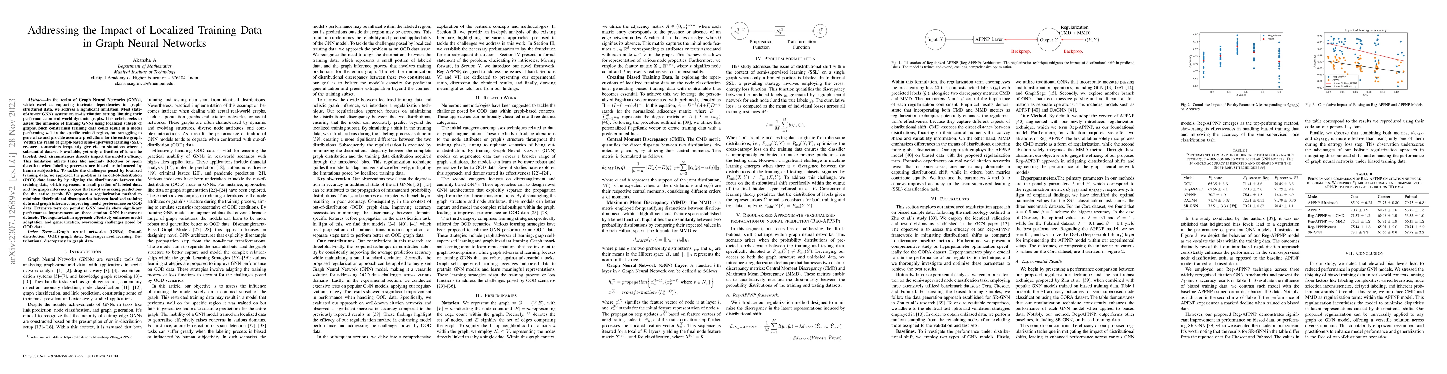 Graph Neural Networks (GNNs) have achieved notable success in learning from graph-structured data, owing to their ability to capture intricate dependencies and relationships between nodes. They excel in various applications, including semi-supervised node classification, link prediction, and graph generation. However, it is important to acknowledge that the majority of state-of-the-art GNN models are built upon the assumption of an in-distribution setting, which hinders their performance on real-world graphs with dynamic structures. In this article, we aim to assess the impact of training GNNs on localized subsets of the graph. Such restricted training data may lead to a model that performs well in the specific region it was trained on but fails to generalize and make accurate predictions for the entire graph. In the context of graph-based semi-supervised learning (SSL), resource constraints often lead to scenarios where the dataset is large, but only a portion of it can be labeled, affecting the model's performance. This limitation affects tasks like anomaly detection or spam detection when labeling processes are biased or influenced by human subjectivity. To tackle the challenges posed by localized training data, we approach the problem as an out-of-distribution (OOD) data issue by by aligning the distributions between the training data, which represents a small portion of labeled data, and the graph inference process that involves making predictions for the entire graph. We propose a regularization method to minimize distributional discrepancies between localized training data and graph inference, improving model performance on OOD data. Extensive tests on popular GNN models show significant performance improvement on three citation GNN benchmark datasets. The regularization approach effectively enhances model adaptation and generalization, overcoming challenges posed by OOD data.