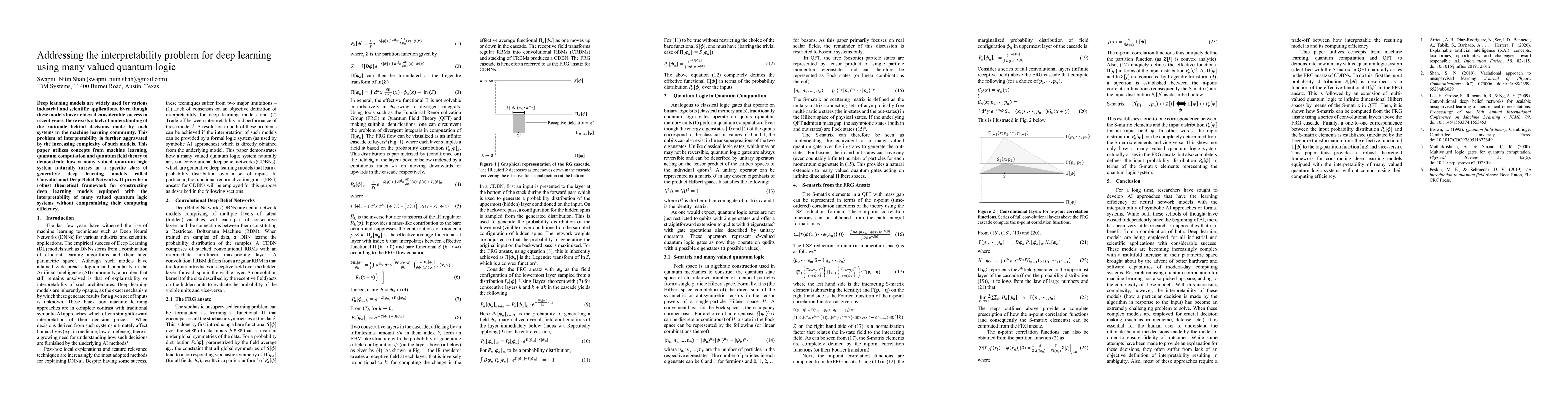 This paper explores how many valued quantum logic can enhance the interpretability of deep learning models, specifically Convolutional Deep Belief Networks, by providing a theoretical framework that maintains computational efficiency while offering insights into decision-making processes.