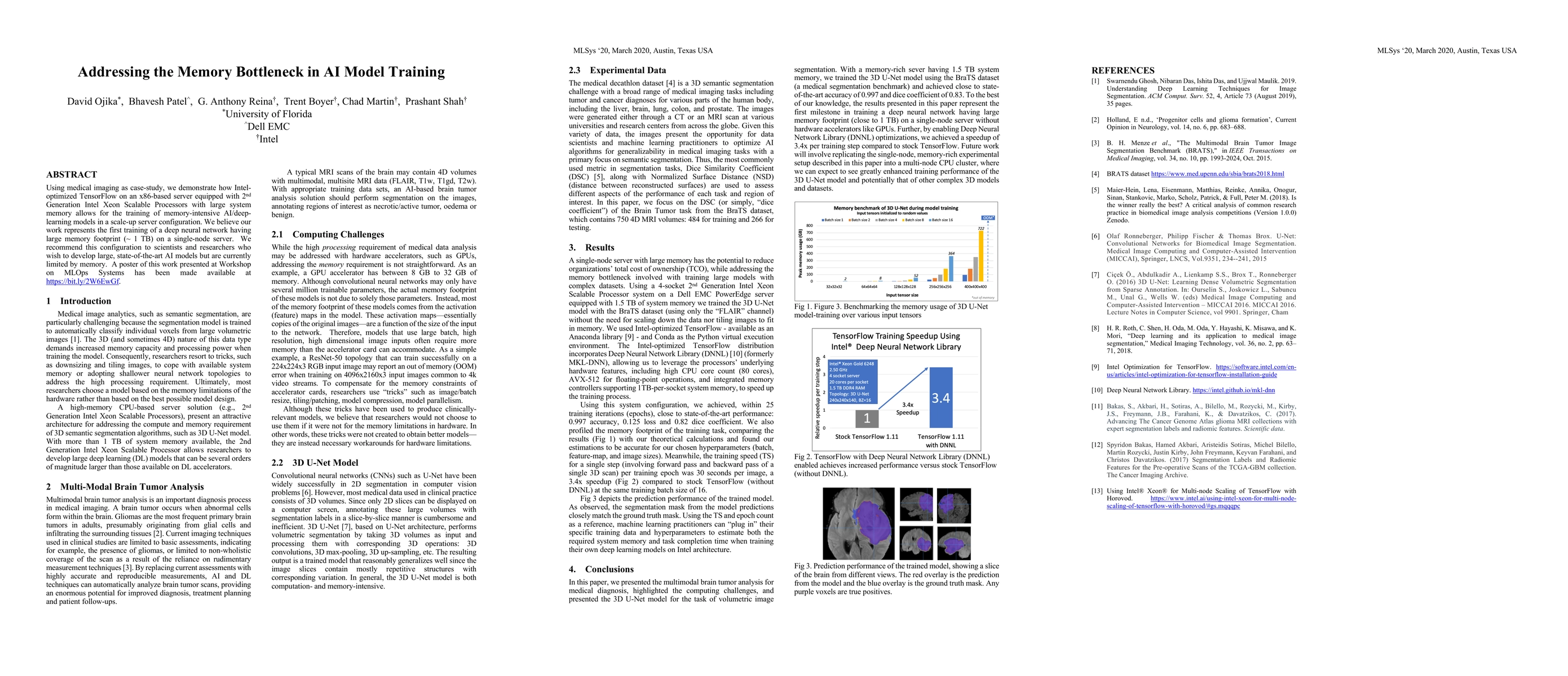 This paper demonstrates the successful training of a memory-intensive deep neural network on a single-node x86-based server using Intel-optimized TensorFlow, overcoming memory bottlenecks typically faced in AI model training. The authors recommend this configuration for researchers aiming to develop large AI models.