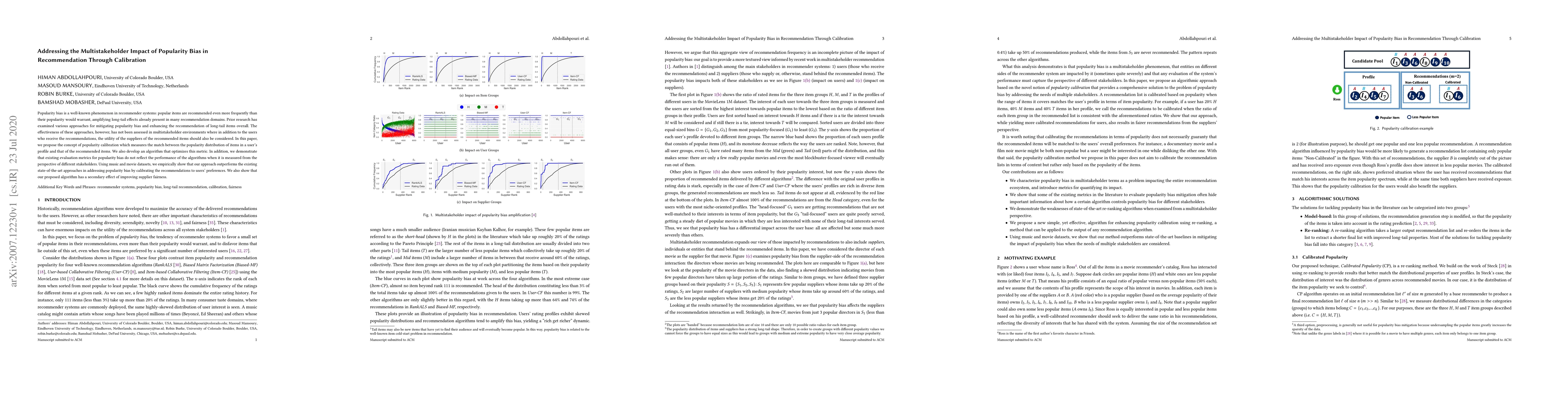 This paper proposes "popularity calibration" to mitigate popularity bias in recommender systems, optimizing the match between user profiles and recommended items. It demonstrates that existing metrics fail to capture multistakeholder impacts, showing improved performance and supplier fairness through empirical tests on music and movie datasets.