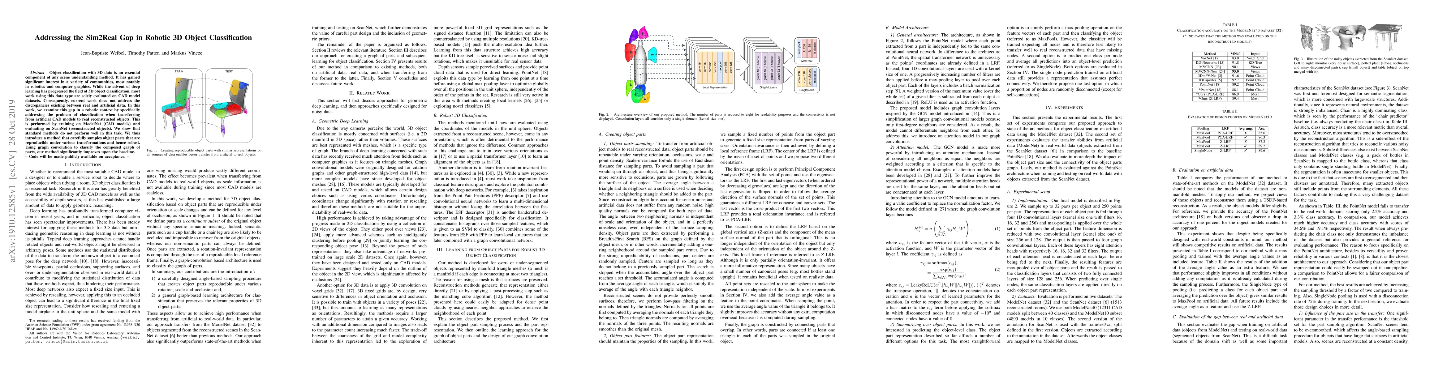 Object classification with 3D data is an essential component of any scene understanding method. It has gained significant interest in a variety of communities, most notably in robotics and computer graphics. While the advent of deep learning has progressed the field of 3D object classification, most work using this data type are solely evaluated on CAD model datasets. Consequently, current work does not address the discrepancies existing between real and artificial data. In this work, we examine this gap in a robotic context by specifically addressing the problem of classification when transferring from artificial CAD models to real reconstructed objects. This is performed by training on ModelNet (CAD models) and evaluating on ScanNet (reconstructed objects). We show that standard methods do not perform well in this task. We thus introduce a method that carefully samples object parts that are reproducible under various transformations and hence robust. Using graph convolution to classify the composed graph of parts, our method significantly improves upon the baseline.