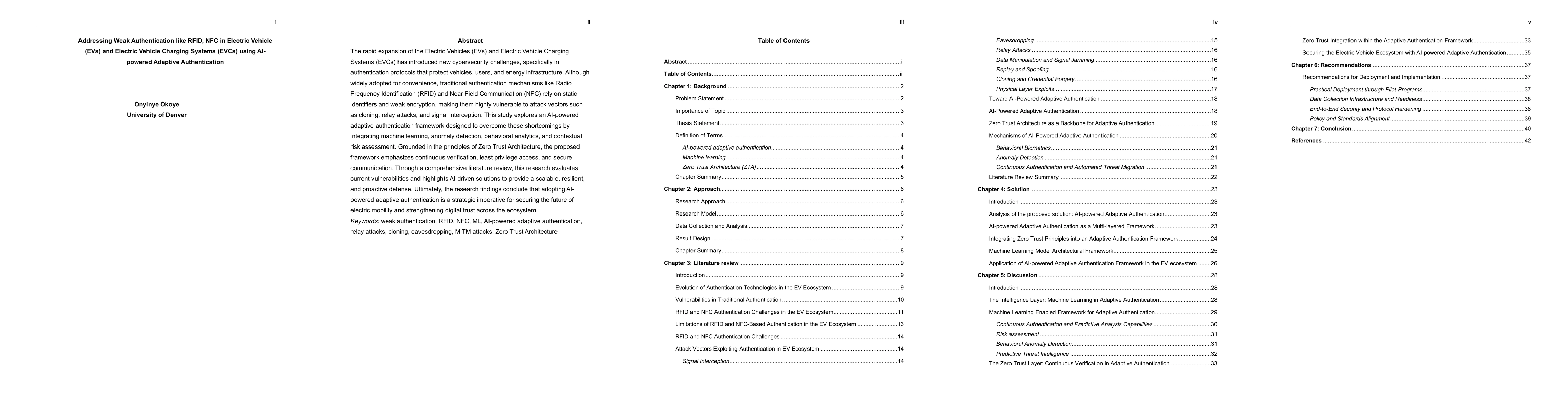 The rapid expansion of the Electric Vehicles (EVs) and Electric Vehicle Charging Systems (EVCs) has introduced new cybersecurity challenges, specifically in authentication protocols that protect vehicles, users, and energy infrastructure. Although widely adopted for convenience, traditional authentication mechanisms like Radio Frequency Identification (RFID) and Near Field Communication (NFC) rely on static identifiers and weak encryption, making them highly vulnerable to attack vectors such as cloning, relay attacks, and signal interception. This study explores an AI-powered adaptive authentication framework designed to overcome these shortcomings by integrating machine learning, anomaly detection, behavioral analytics, and contextual risk assessment. Grounded in the principles of Zero Trust Architecture, the proposed framework emphasizes continuous verification, least privilege access, and secure communication. Through a comprehensive literature review, this research evaluates current vulnerabilities and highlights AI-driven solutions to provide a scalable, resilient, and proactive defense. Ultimately, the research findings conclude that adopting AI-powered adaptive authentication is a strategic imperative for securing the future of electric mobility and strengthening digital trust across the ecosystem. Keywords: weak authentication, RFID, NFC, ML, AI-powered adaptive authentication, relay attacks, cloning, eavesdropping, MITM attacks, Zero Trust Architecture