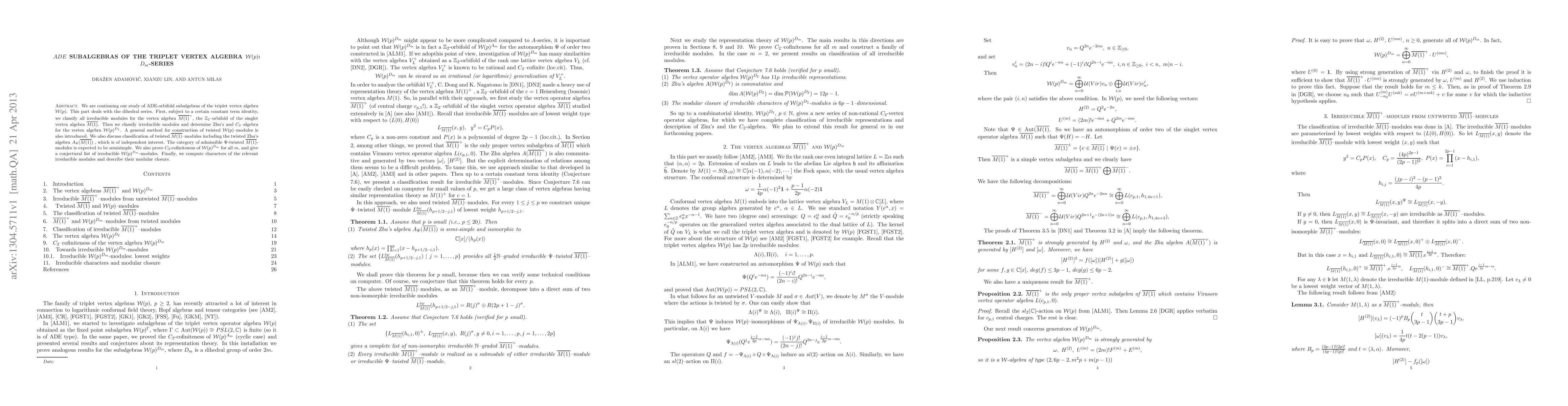 This paper classifies irreducible modules and determines Zhu's algebra and $C_2$-algebra for the $D_m$-series vertex algebra $W(p)$. It introduces a method for constructing twisted modules and proves $C_2$-cofiniteness for $triplet^{D_m}$ modules, along with a conjectured list of their irreducible modules.