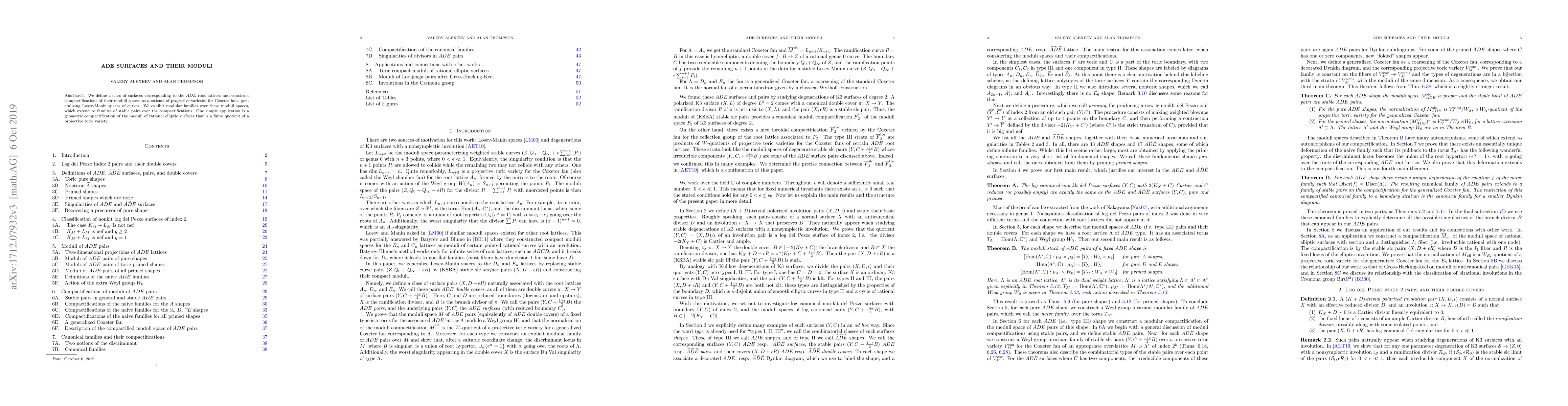 This paper defines surfaces associated with ADE root lattices and constructs compactifications of their moduli spaces as quotients of projective varieties for Coxeter fans, extending Losev-Manin constructions. It also presents modular families over these moduli that extend to stable pairs, with a notable application being a finite quotient compactification for rational elliptic surfaces.