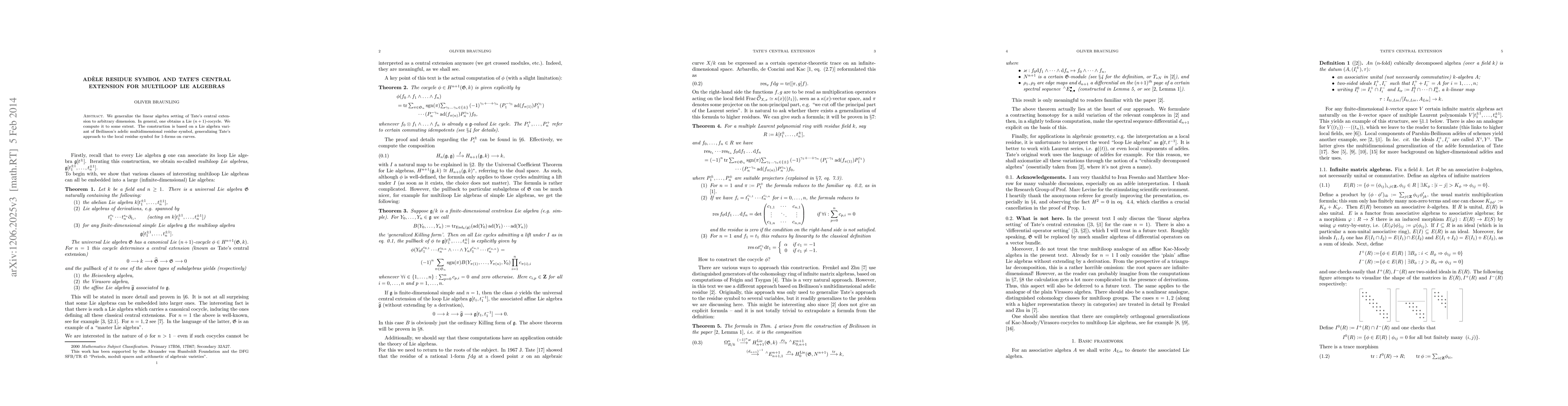 This paper generalizes Tate's central extension to multiloop Lie algebras, constructing a Lie (n+1)-cocycle based on a Lie algebra variant of the adelic multidimensional residue symbol, and explicitly computes this extension.