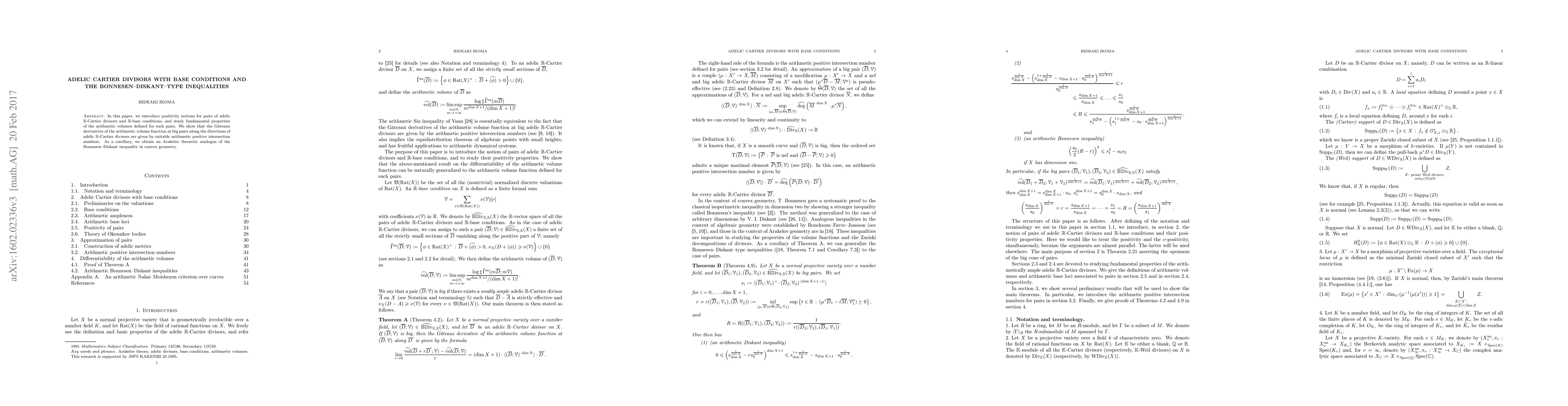 This paper explores positivity notions for pairs of adelic R-Cartier divisors and R-base conditions, establishing properties of their arithmetic volumes. It derives an Arakelov theoretic analogue of the Bonnesen-Diskant inequality, linking arithmetic positive intersection numbers to the Gateaux derivatives of the arithmetic volume function.