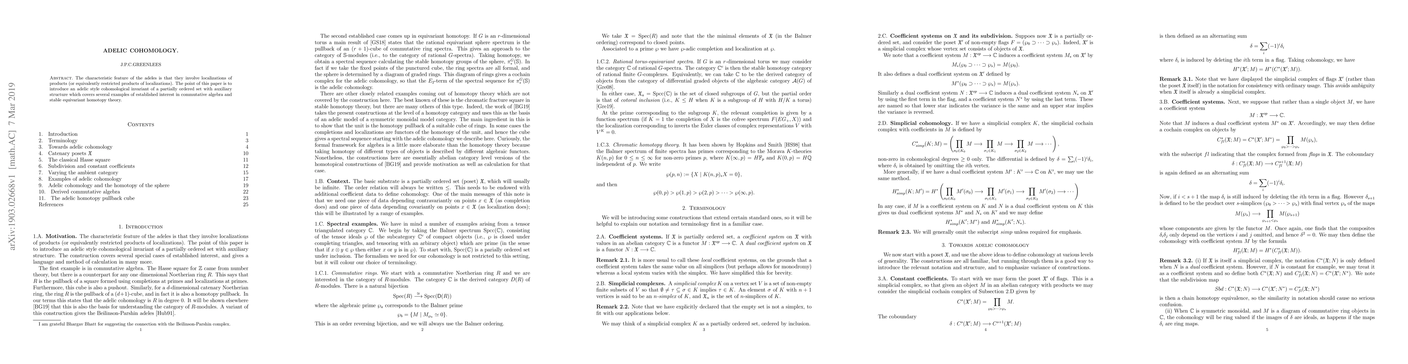 The characteristic feature of the adeles is that they involve localizations of products (or equivalently restricted products of localizations). The point of this paper is to introduce an adelic style cohomological invariant of a partially ordered set with auxiliary structure which covers several examples of established interest in commutative algebra and stable equivariant homotopy theory.