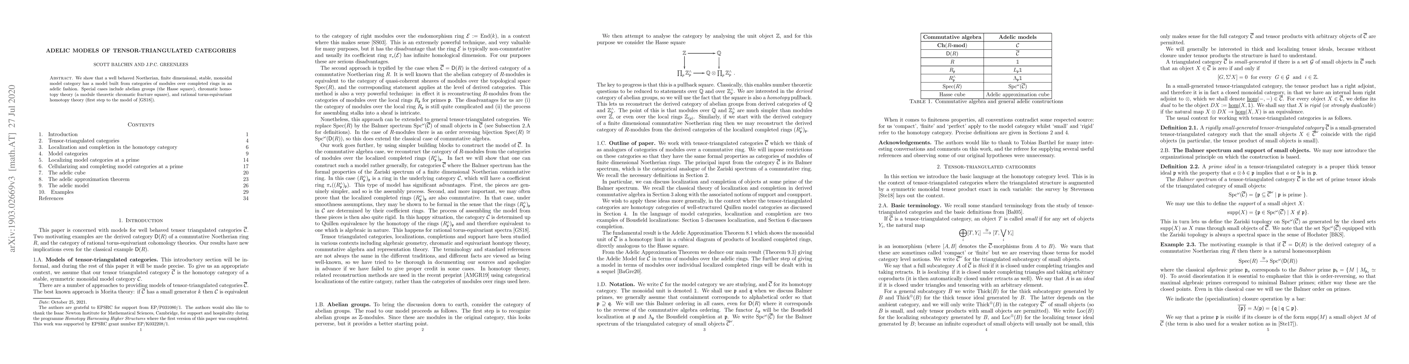 We show that a well behaved Noetherian, finite dimensional, stable, monoidal model category is equivalent to a model built from categories of modules over completed rings in an adelic fashion. For abelian groups this is based on the Hasse square, for chromatic homotopy theory this is based on the chromatic fracture square, and for rational torus-equivariant homotopy theory this is the model of Greenlees-Shipley arXiv:1101.2511.