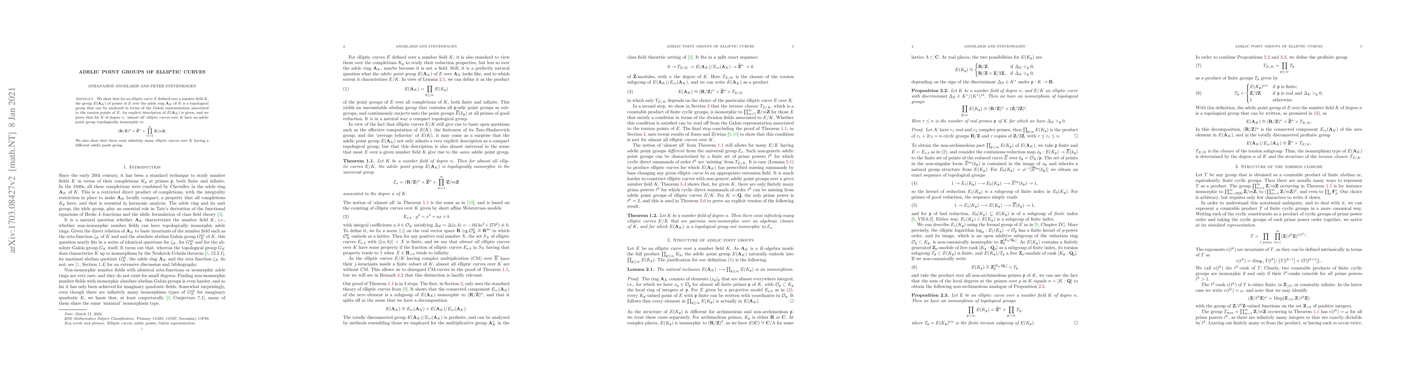 This paper investigates the topological structure of the group E(A) of points on elliptic curves E over number fields K, showing it can be analyzed via Galois representations of torsion points. The authors prove that for fields of degree n, most elliptic curves have an adelic point group isomorphic to a universal group, while also demonstrating the existence of infinitely many curves with distinct adelic point groups.