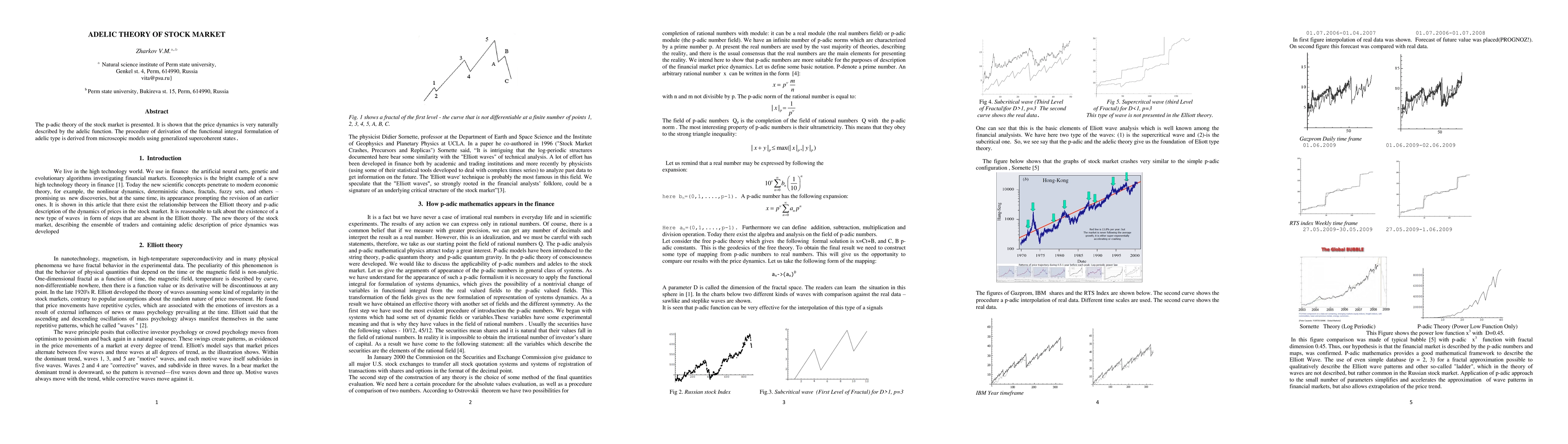 Summary: This paper introduces a p-adic theory of the stock market, demonstrating that price dynamics can be naturally described using adelic functions. It derives a functional integral formulation from microscopic models employing generalized supercoherent states.