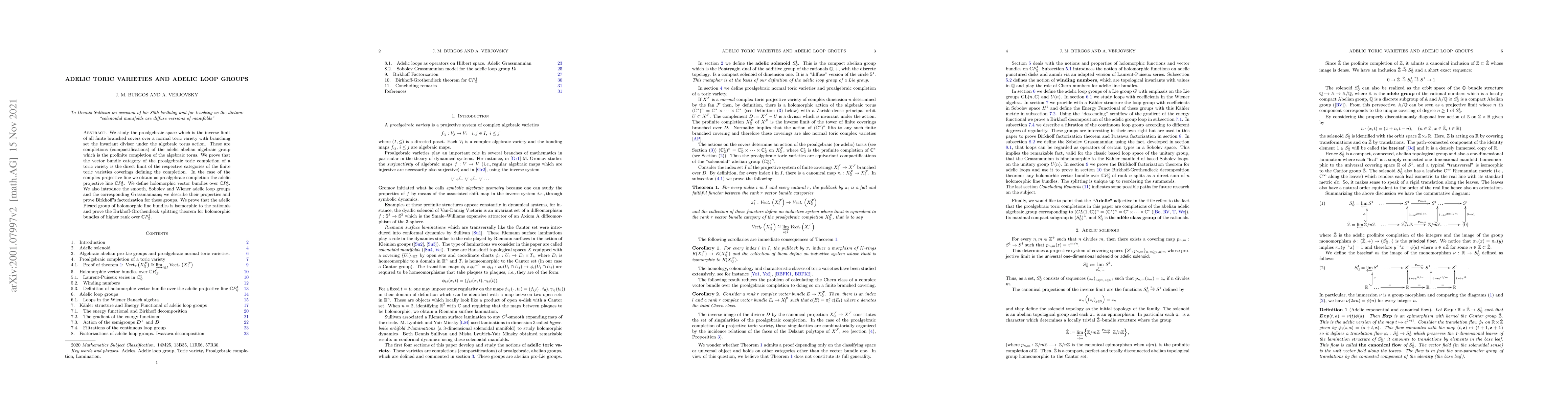 This paper investigates the proalgebraic completion of normal toric varieties via their finite branched covers, establishing the vector bundle category of the toric completion. It introduces and studies adelic loop groups and their associated Grassmannians, proving Birkhoff's factorization theorem and the Birkhoff-Grothendieck splitting theorem for holomorphic line bundles.