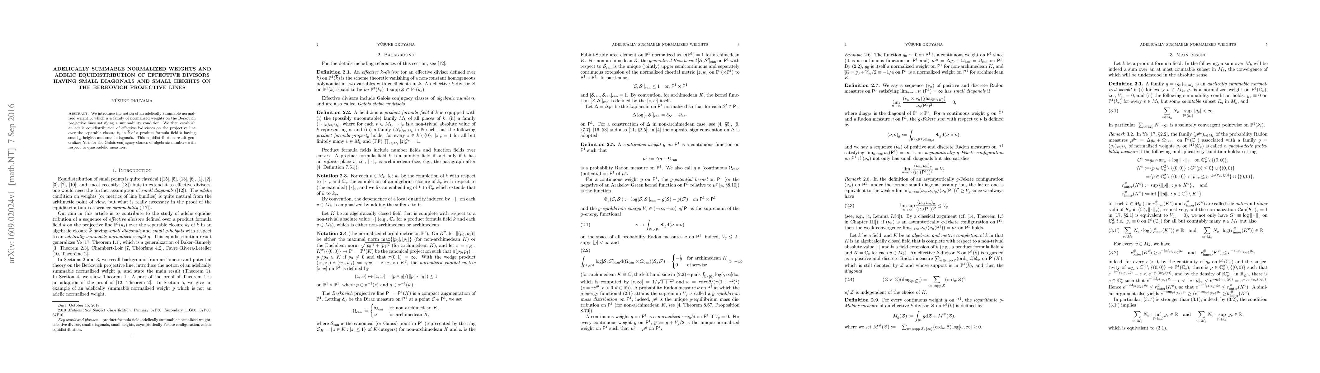Summary: This paper introduces adelically summable normalized weights on Berkovich projective lines and proves an adelic equidistribution theorem for effective divisors with small heights and diagonals, generalizing Ye's results on algebraic number distributions.