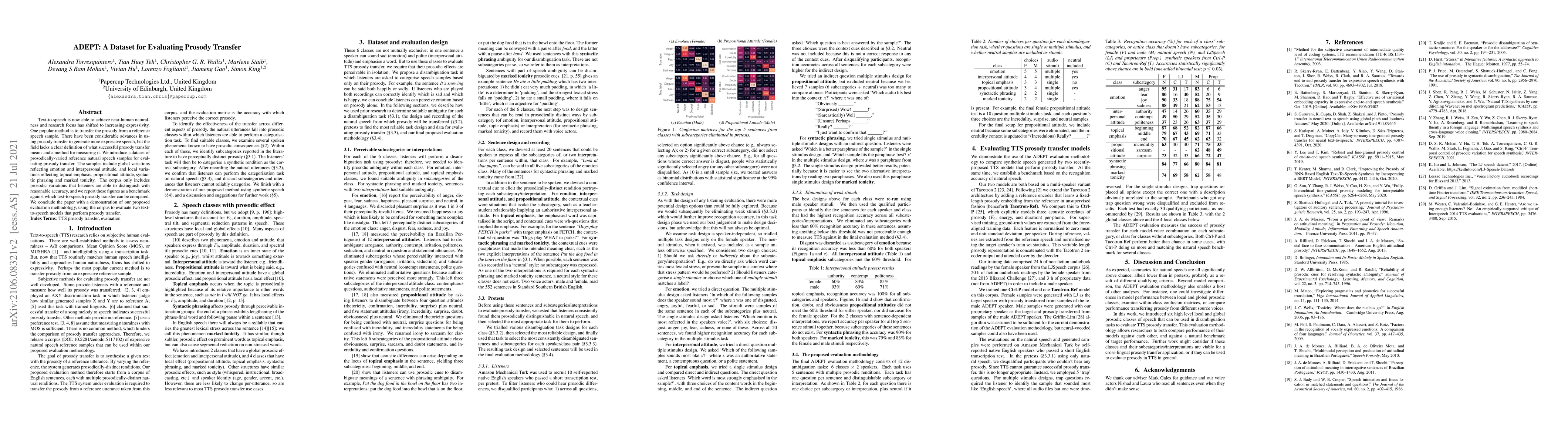 This paper introduces ADEPT, a dataset for assessing prosody transfer in text-to-speech systems. It includes reference speech samples with various global and local prosodic variations, benchmarked against human distinguishability. The authors demonstrate the dataset's utility by evaluating two prosody transfer models.