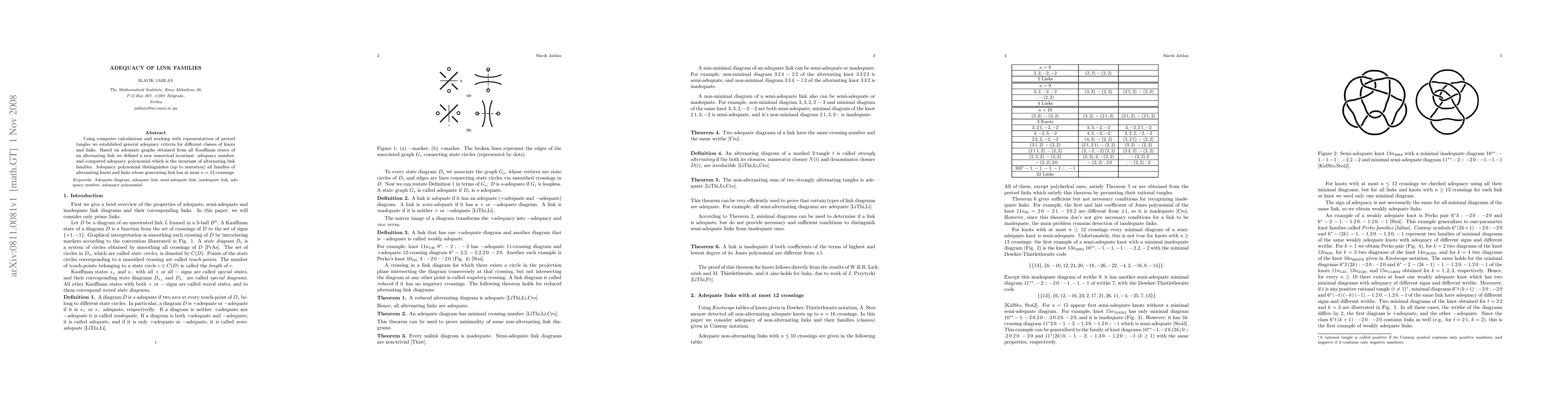 Using computer calculations and working with representatives of pretzel tangles we established general adequacy criteria for different classes of knots and links. Based on adequate graphs obtained from all Kauffman states of an alternating link we defined a new numerical invariant: adequacy number, and computed adequacy polynomial which is the invariant of alternating link families. Adequacy polynomial distinguishes (up to mutation) all families of alternating knots and links whose generating link has at most $n=12$ crossings.