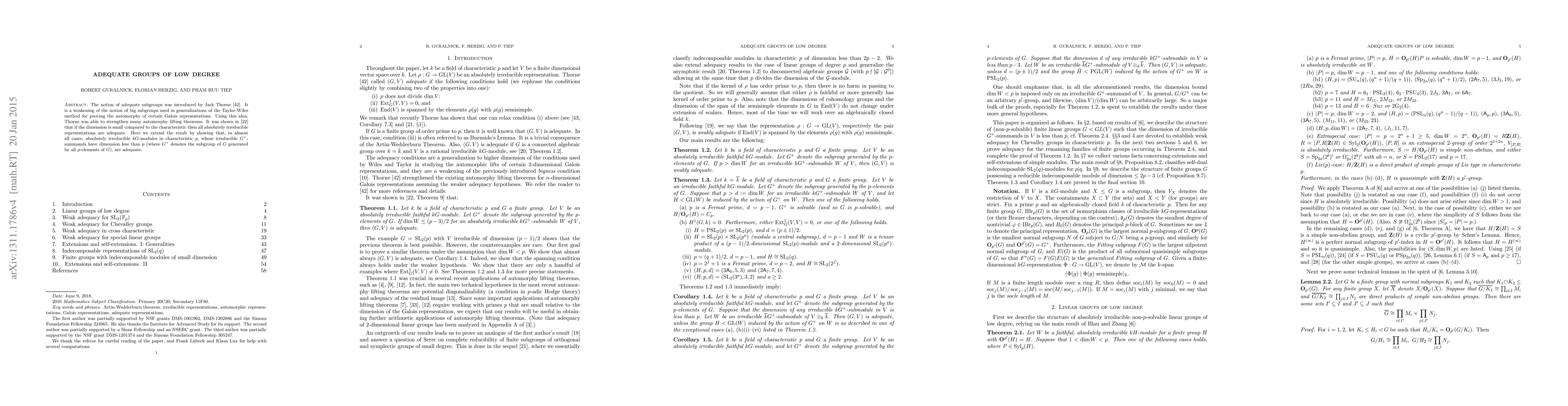 This paper extends the concept of adequate subgroups introduced by Thorne, showing that almost all absolutely irreducible kG-modules in characteristic p, where the dimension of their irreducible G+-summands is less than p, are adequate. This strengthens automorphy lifting theorems for certain Galois representations.