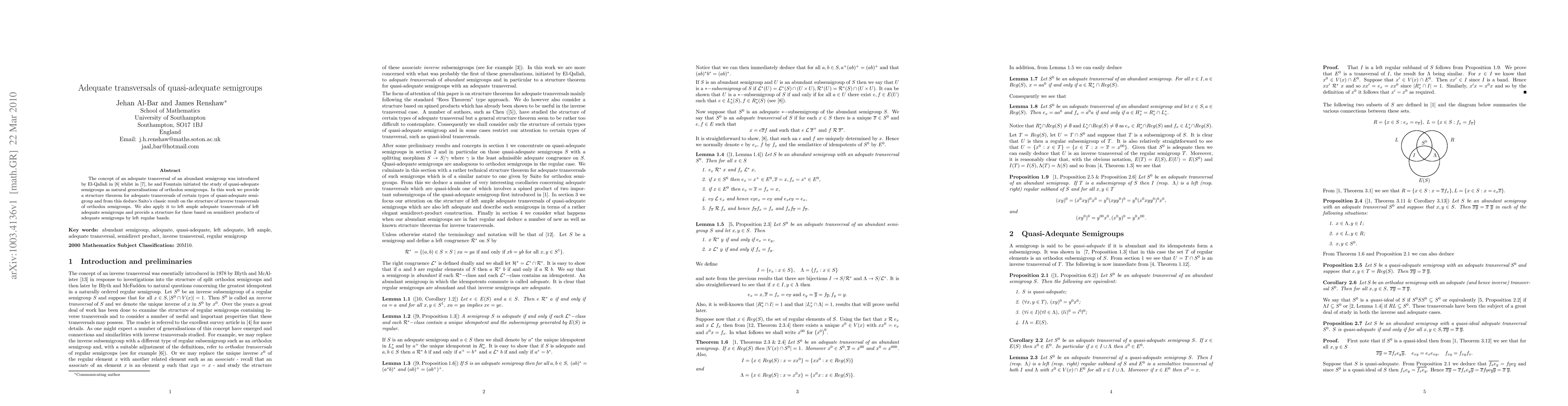 The concept of an adequate transversal of an abundant semigroup was introduced by El-Qallali in [8] whilst in [7], he and Fountain initiated the study of quasi-adequate semigroups as natural generalisations of orthodox semigroups. In this work we provide a structure theorem for adequate transversals of certain types of quasi-adequate semigroup and from this deduce Saito's classic result on the structure of inverse transversals of orthodox semigroups. We also apply it to left ample adequate transversals of left adequate semigroups and provide a structure for these based on semidirect products of adequate semigroups by left regular bands.