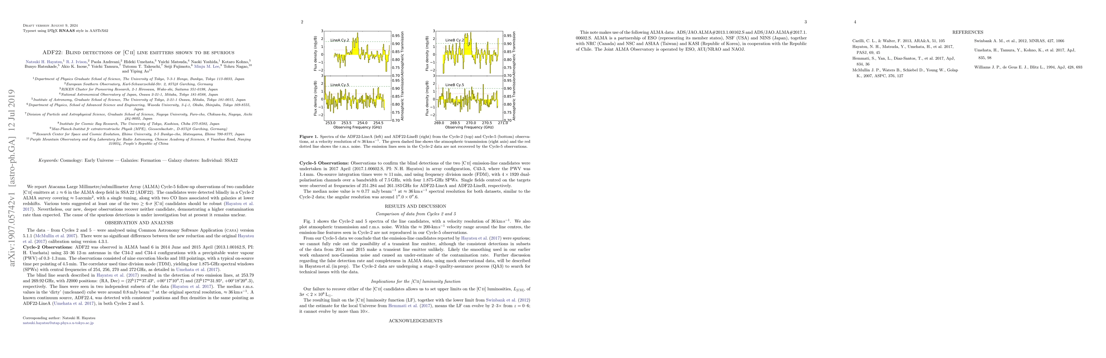 We report Atacama Large Millimetre/submillimeter Array (ALMA) Cycle-5 follow-up observations of two candidate [CII] emitters at z ~ 6 in the ALMA deep field in SSA22 (ADF22). The candidates were detected blindly in a Cycle-2 ALMA survey covering ~ 5 square arcmins, with a single tuning, along with two CO lines associated with galaxies at lower redshifts. Various tests suggested at least one of the two > 6-sigma [CII] candidates should be robust (Hayatsu et al. 2017). Nevertheless, our new, deeper observations recover neither candidate, demonstrating a higher contamination rate than expected. The cause of the spurious detections is under investigation but at present it remains unclarified.
