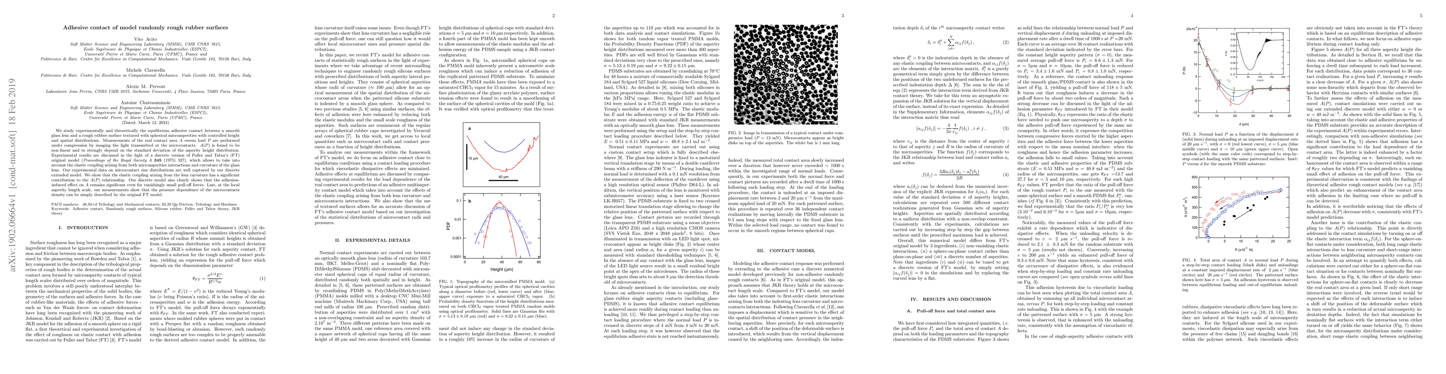 Researchers studied the adhesive contact between a smooth glass lens and rough rubber surfaces with controlled asperities, finding that adhesion significantly affects the contact area, even at low pull-off forces.