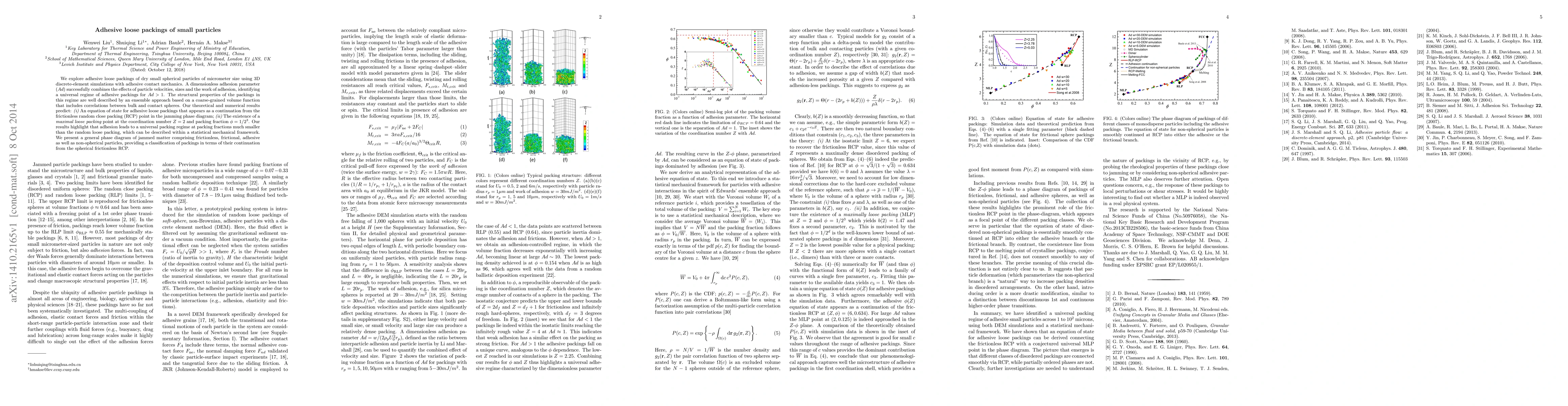 This paper investigates adhesive loose packings of small spherical particles using 3D simulations, identifying a universal regime for $Ad>1$ where adhesion effects dominate. It presents an equation of state and predicts a maximal loose packing point at $Z=2$ and $\phi=1/2^{3}$, highlighting a new statistical mechanical framework for adhesive packings.