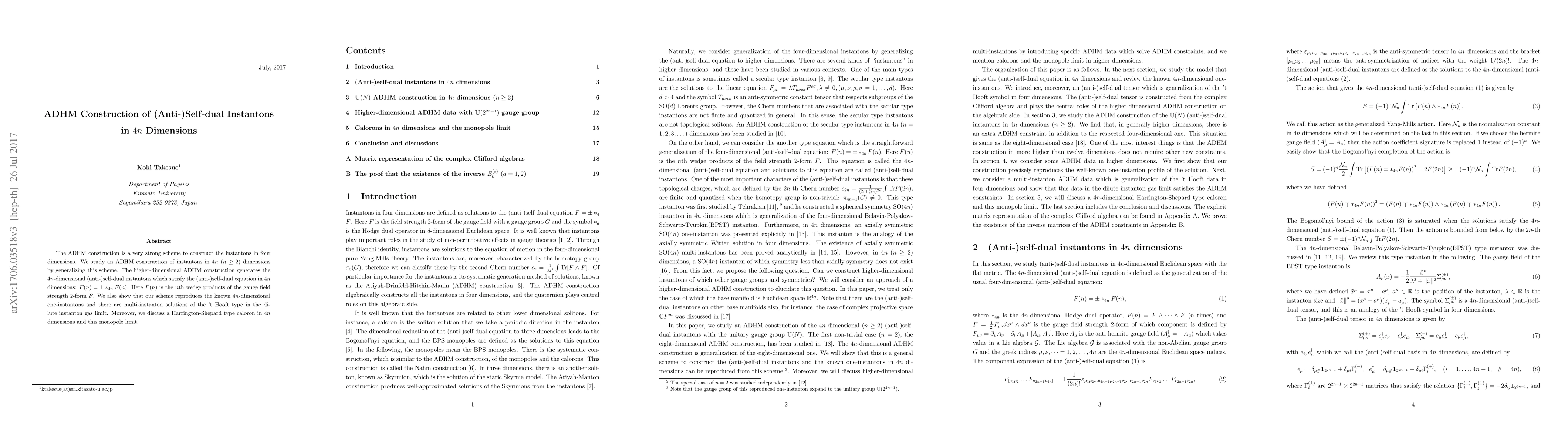 The ADHM construction is extended to generate $4n$-dimensional (anti-)self-dual instantons, satisfying the (anti-)self-dual equation $F(n)=\pm\ast_{4n}F(n)$. The scheme reproduces known $4n$-dimensional one-instantons and supports multi-instanton solutions, including 't Hooft-type configurations in the dilute limit.