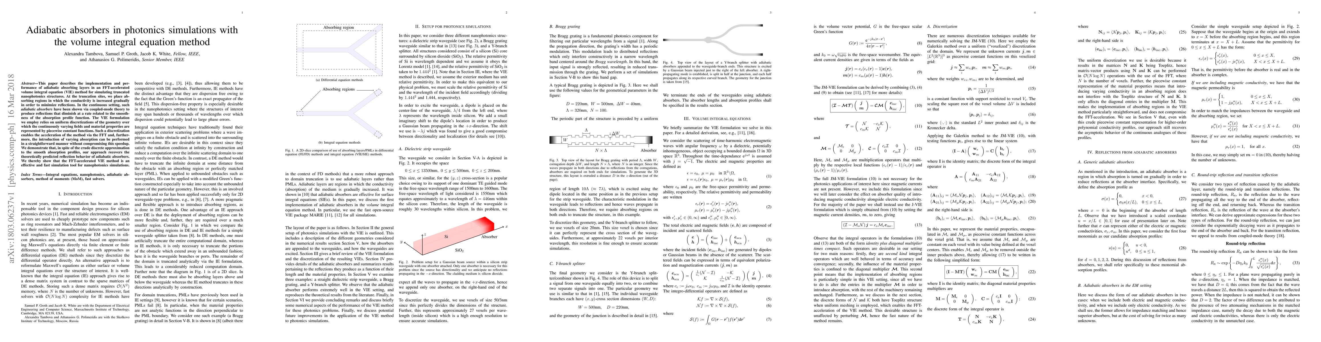 This paper presents an FFT-accelerated volume integral equation method incorporating adiabatic absorbers to minimize reflections in truncated nanophotonics simulations. Despite discretizing smooth absorption profiles, the method effectively reproduces the predicted reflection behavior, demonstrating its effectiveness for fast nanophotonics simulations.