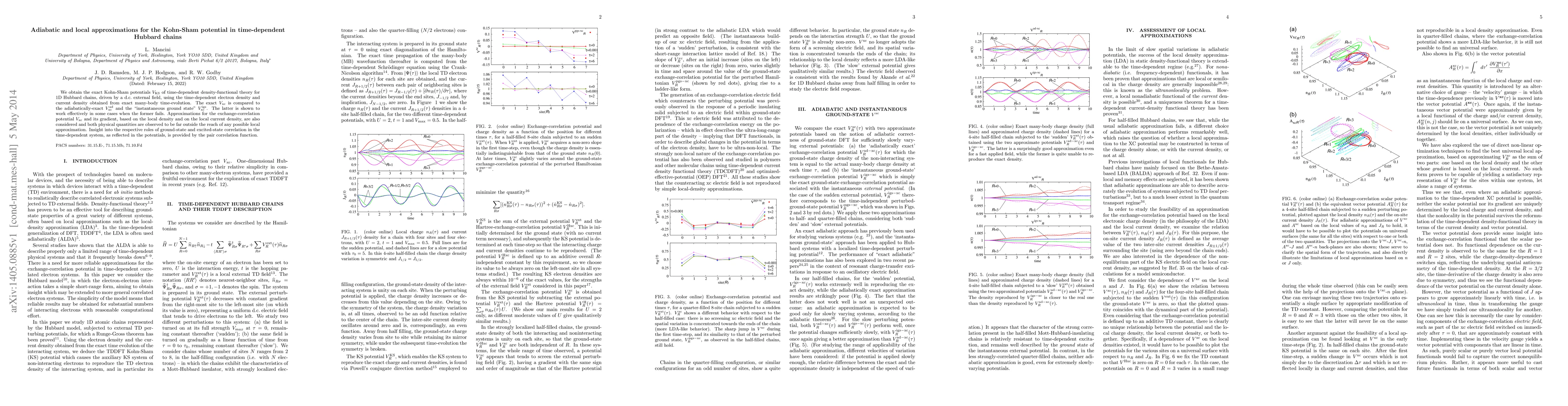 We obtain the exact Kohn-Sham potentials $V_{\mathrm{KS}}$ of time-dependent density-functional theory for 1D Hubbard chains, driven by a d.c.\ external field, using the time-dependent electron density and current density obtained from exact many-body time-evolution. The exact $V_{\mathrm{xc}}$ is compared to the adiabatically-exact $V_{\mathrm{xc}}^{\mathrm{ad}}$ and the "instantaneous ground state" $V_{\mathrm{xc}}^{\mathrm{igs}}$. The latter is shown to work effectively in some cases when the former fails. Approximations for the exchange-correlation potential $V_{\mathrm{xc}}$ and its gradient, based on the local density and on the local current density, are also considered and both physical quantities are observed to be far outside the reach of any possible local approximation. Insight into the respective roles of ground-state and excited-state correlation in the time-dependent system, as reflected in the potentials, is provided by the pair correlation function.