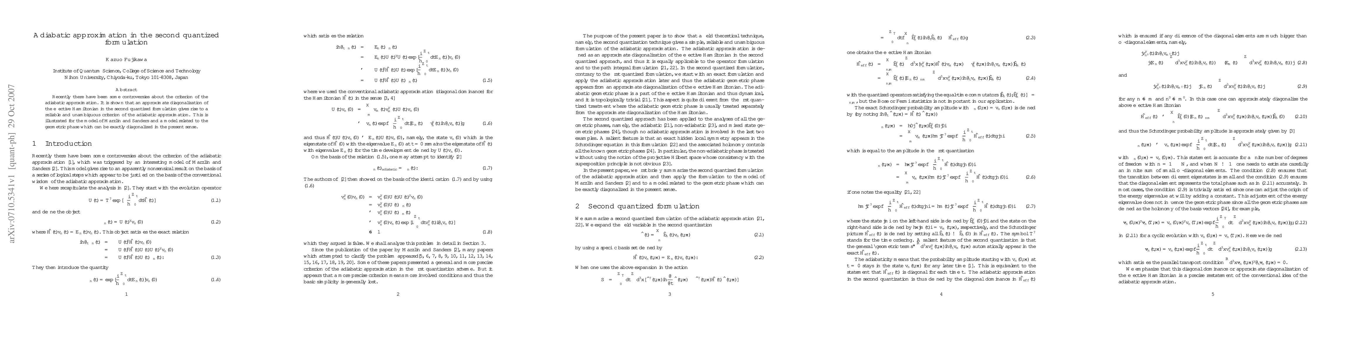 The paper proposes a reliable criterion for the adiabatic approximation using approximate diagonalization of the effective Hamiltonian in the second quantized formulation. It demonstrates this criterion through the Marzlin and Sanders model and a related geometric phase model.