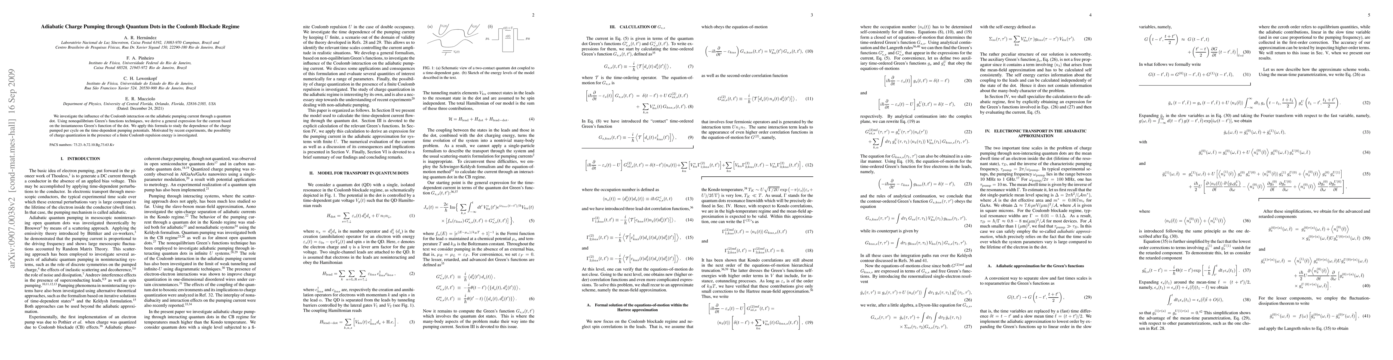 This paper explores adiabatic charge pumping through quantum dots under Coulomb blockade, deriving a current expression using nonequilibrium Green's functions. It examines the quantized charge pumped per cycle in relation to the time-dependent pumping potentials and finite Coulomb repulsion.