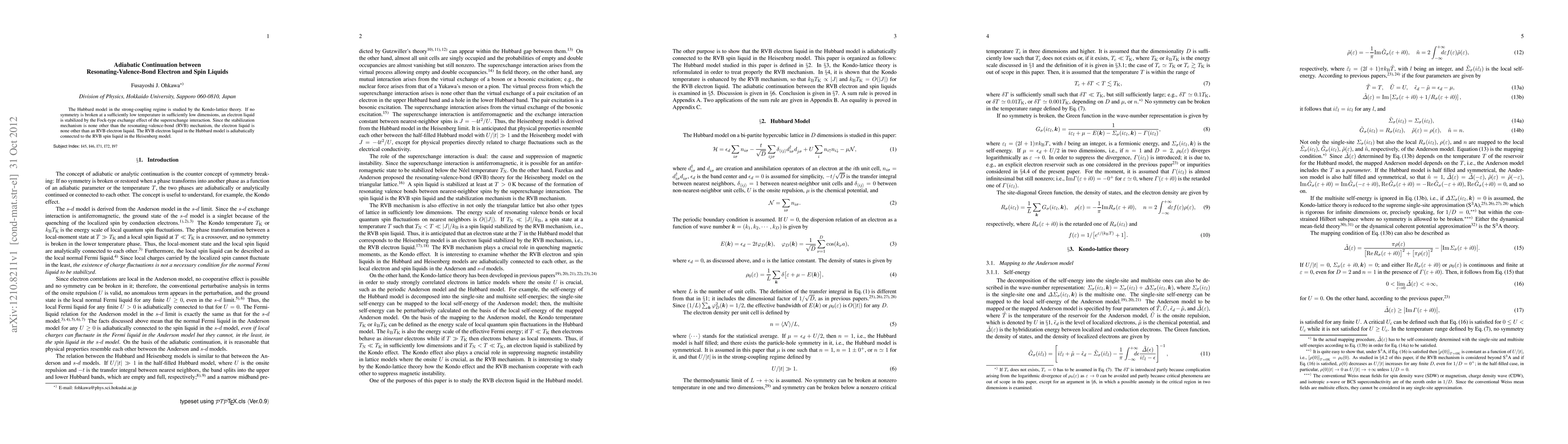 The research paper explores a connection between two theoretical models, showing that an electron liquid in one model can transform into a spin liquid in another under certain conditions, highlighting the adiabatic continuation between these states.