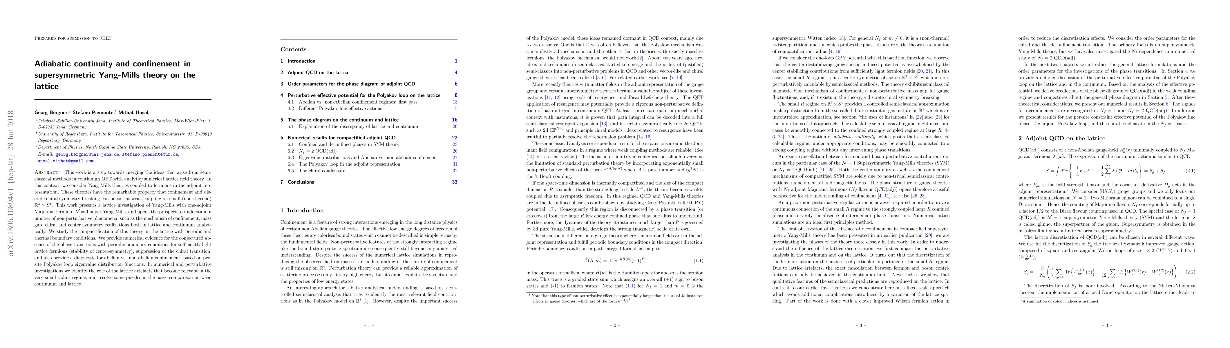 This work is a step towards merging the ideas that arise from semi-classical methods in continuum QFT with analytic/numerical lattice field theory. In this context, we consider Yang-Mills theories coupled to fermions in the adjoint representation. These theories have the remarkable property that confinement and discrete chiral symmetry breaking can persist at weak coupling on small (non-thermal) $\mathbb R^3 \times S^1$. This work presents a lattice investigation of Yang-Mills with one adjoint Majorana fermion, $\mathcal N=1$ super Yang-Mills, and opens the prospect to understand a number of non-perturbative phenomena, such as the mechanism of confinement, mass gap, chiral and center symmetry realizations both in lattice and continuum analytically. We study the compactification of this theory on the lattice with periodic and thermal boundary conditions. We provide numerical evidence for the conjectured absence of the phase transitions with periodic boundary conditions for sufficiently light lattice fermions (stability of center-symmetry), suppression of the chiral transition, and also provide a diagnostic for abelian vs. non-abelian confinement, based on per-site Polyakov loop eigenvalue distribution functions. In numerical and perturbative investigations we identify the role of the lattice artefacts that become relevant in the very small radius regime, and resolve some puzzles in the naive comparison between continuum and lattice.