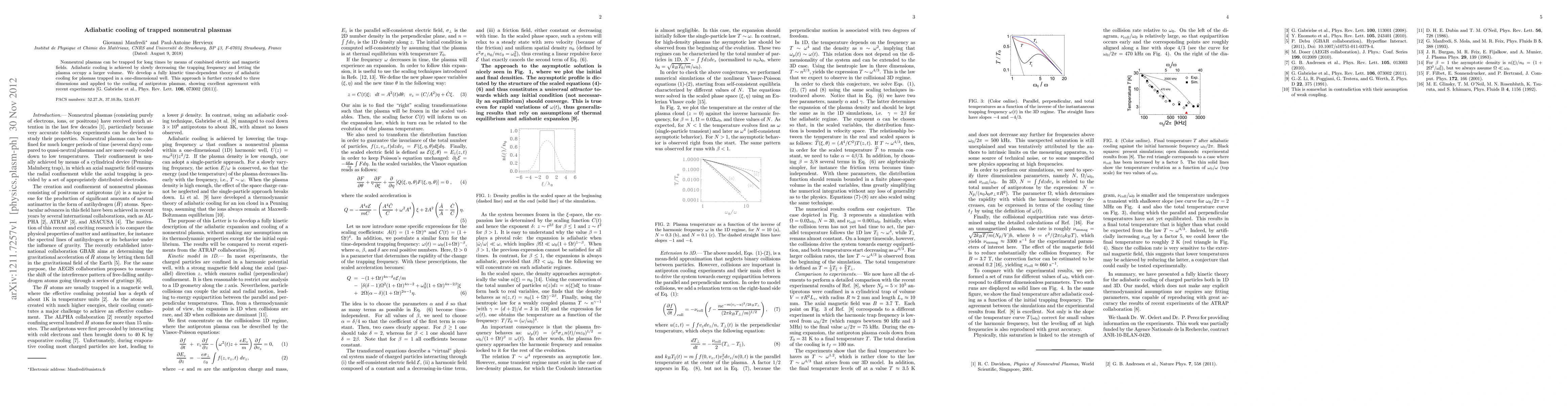 This paper develops a fully kinetic theory for adiabatic cooling of trapped nonneutral plasmas by gradually reducing the trapping frequency, and extends this theory to three dimensions, demonstrating its effectiveness in cooling antiproton plasmas with experimental validation.