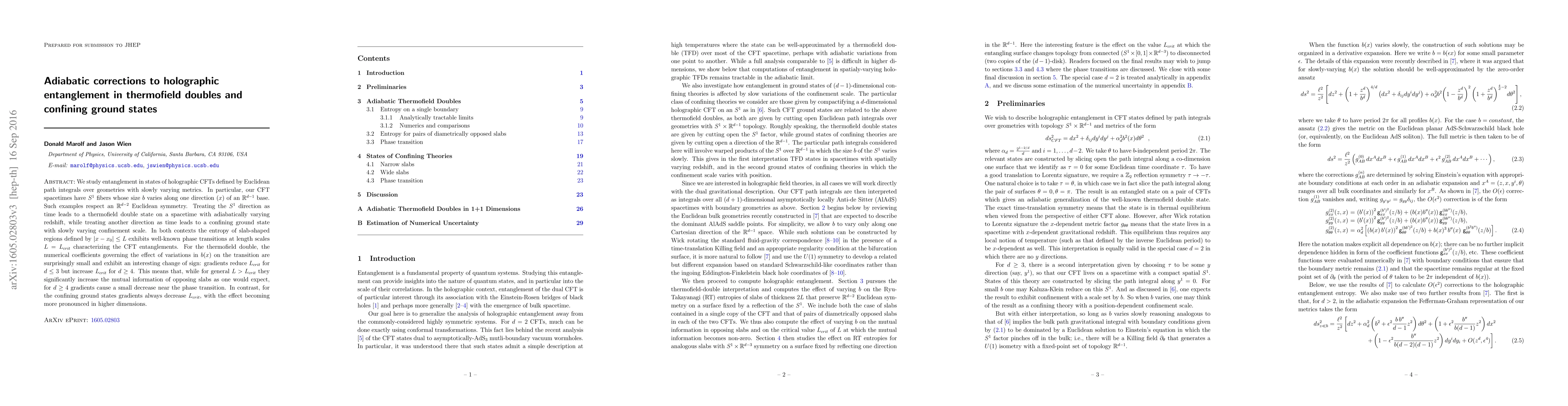 We study entanglement in states of holographic CFTs defined by Euclidean path integrals over geometries with slowly varying metrics. In particular, our CFT spacetimes have $S^1$ fibers whose size $b$ varies along one direction ($x$) of an ${\mathbb R}^{d-1}$ base. Such examples respect an ${\mathbb R}^{d-2}$ Euclidean symmetry. Treating the $S^1$ direction as time leads to a thermofield double state on a spacetime with adiabatically varying redshift, while treating another direction as time leads to a confining ground state with slowly varying confinement scale. In both contexts the entropy of slab-shaped regions defined by $|x - x_0| \le L$ exhibits well-known phase transitions at length scales $L= L_{crit}$ characterizing the CFT entanglements. For the thermofield double, the numerical coefficients governing the effect of variations in $b(x)$ on the transition are surprisingly small and exhibit an interesting change of sign: gradients reduce $L_{crit}$ for $d \le 3$ but increase $L_{crit}$ for $d\ge4$. This means that, while for general $L > L_{crit}$ they significantly increase the mutual information of opposing slabs as one would expect, for $d\ge 4$ gradients cause a small decrease near the phase transition. In contrast, for the confining ground states gradients always decrease $L_{crit}$, with the effect becoming more pronounced in higher dimensions.