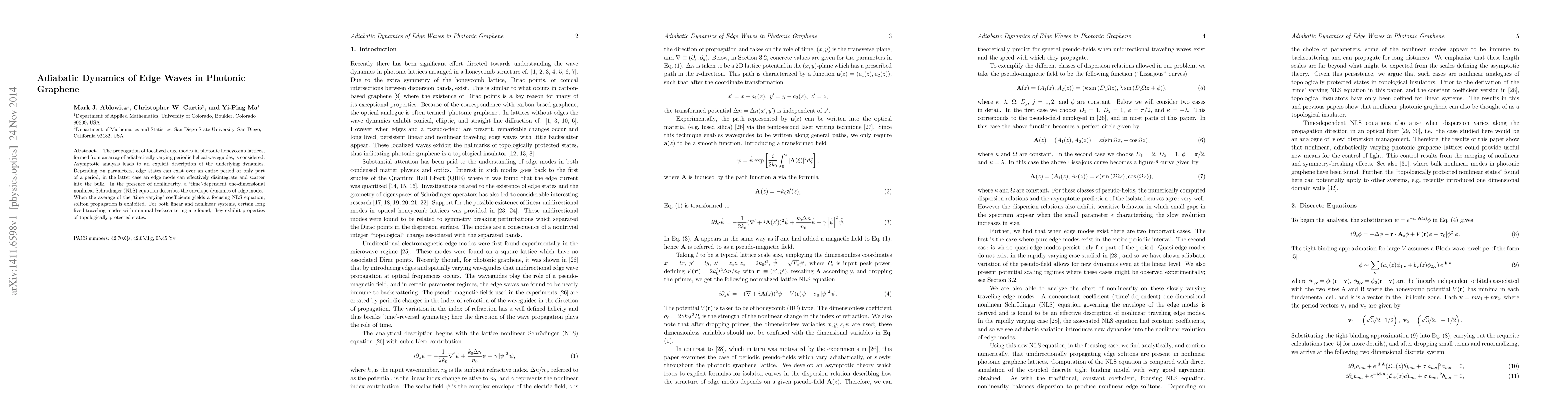 The propagation of localized edge modes in photonic honeycomb lattices, formed from an array of adiabatically varying periodic helical waveguides, is considered. Asymptotic analysis leads to an explicit description of the underlying dynamics. Depending on parameters, edge states can exist over an entire period or only part of a period; in the latter case an edge mode can effectively disintegrate and scatter into the bulk. In the presence of nonlinearity, a `time'-dependent one-dimensional nonlinear Schr\"odinger (NLS) equation describes the envelope dynamics of edge modes. When the average of the `time varying' coefficients yields a focusing NLS equation, soliton propagation is exhibited. For both linear and nonlinear systems, certain long lived traveling modes with minimal backscattering are found; they exhibit properties of topologically protected states.