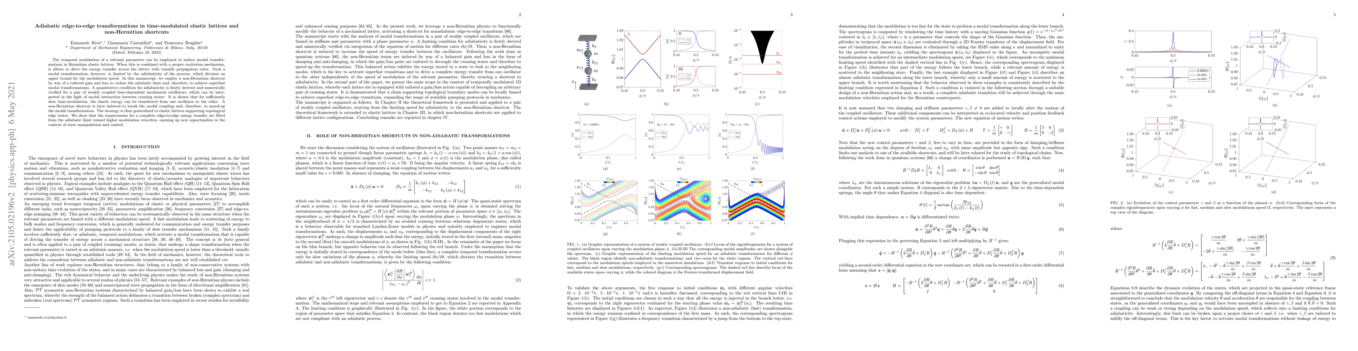 The temporal modulation of a relevant parameter can be employed to induce modal transformations in Hermitian elastic lattices. When this is combined with a proper excitation mechanism, it allows to drive the energy transfer across the lattice with tunable propagation rates. Such a modal transformation, however, is limited by the adiabaticity of the process, which dictates an upper bound for the modulation speed. In this manuscript, we employ a non-Hermitian shortcut by way of a tailored gain and loss to violate the adiabatic limit and, therefore, to achieve superfast modal transformations. A quantitative condition for adiabaticity is firstly derived and numerically verified for a pair of weakly coupled time-dependent mechanical oscillators, which can be interpreted in the light of modal interaction between crossing states. It is shown that for sufficiently slow time-modulation, the elastic energy can be transferred from one oscillator to the other. A non-Hermitian shortcut is later induced to break the modal coupling and, therefore, to speed-up the modal transformation. The strategy is then generalized to elastic lattices supporting topological edge states. We show that the requirements for a complete edge-to-edge energy transfer are lifted from the adiabatic limit toward higher modulation velocities, opening up new opportunities in the context of wave manipulation and control.