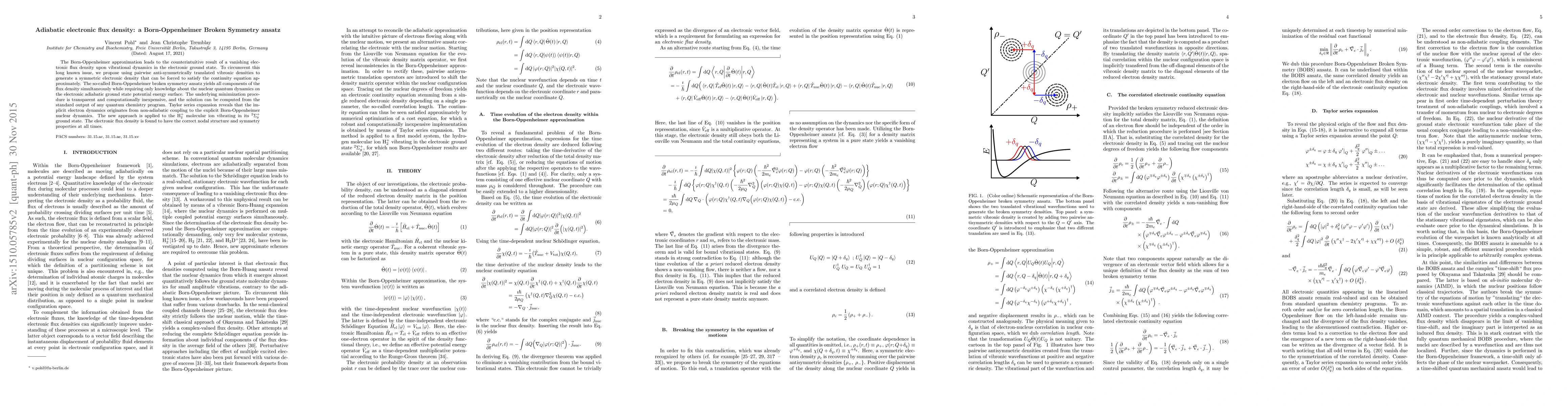 This paper proposes a Born-Oppenheimer broken symmetry ansatz to address the vanishing electronic flux density issue in the Born-Oppenheimer approximation, generating a symmetric electronic density that satisfies the continuity equation. The method is computationally efficient and applied to the ${\rm H}_2^+$ molecular ion, showing correct nodal structure.