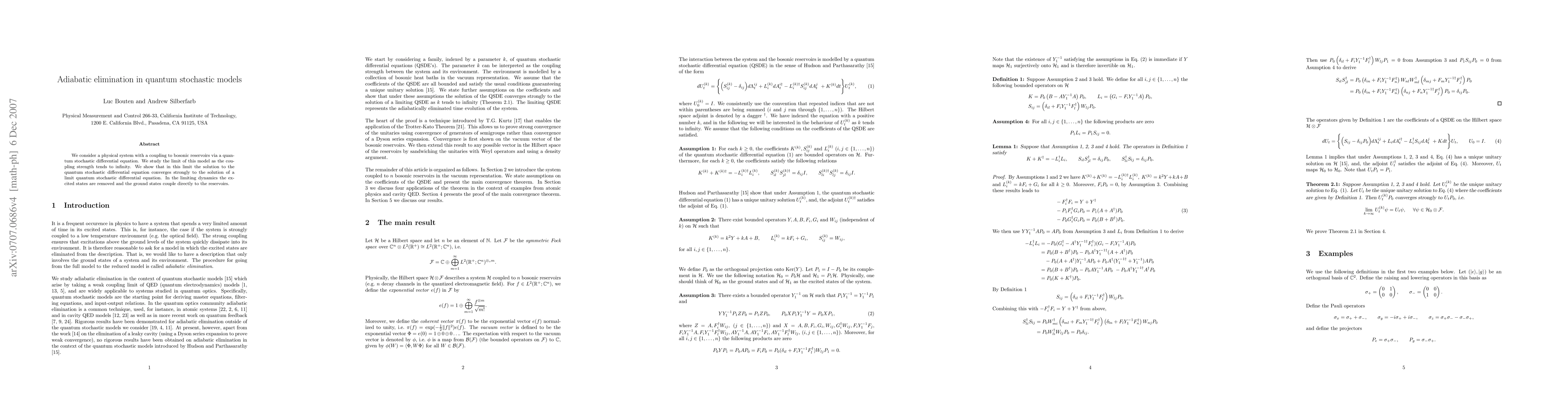 We consider a physical system with a coupling to bosonic reservoirs via a quantum stochastic differential equation. We study the limit of this model as the coupling strength tends to infinity. We show that in this limit the solution to the quantum stochastic differential equation converges strongly to the solution of a limit quantum stochastic differential equation. In the limiting dynamics the excited states are removed and the ground states couple directly to the reservoirs.