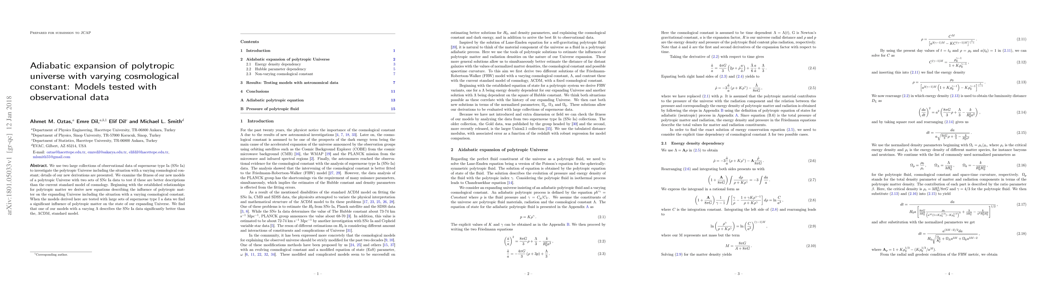 This paper investigates the adiabatic expansion of a polytropic universe with a varying cosmological constant using observational data from supernovae type Ia (SNe Ia). The authors derive new equations for polytropic matter's influence on the expanding universe and find that one model with a varying Λ fits SNe Ia data better than the standard ΛCDM model.