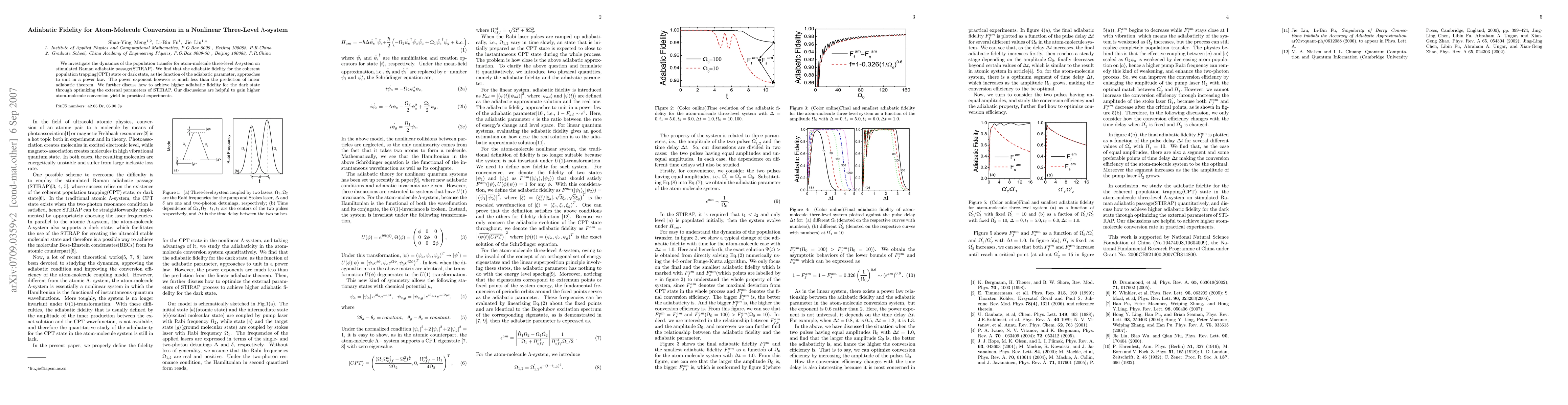This paper explores the dynamics of atom-molecule conversion in a three-level $\Lambda$-system using STIRAP, finding that adiabatic fidelity for the dark state approaches unity in a power law but with a lower exponent than predicted. The study suggests optimizing STIRAP parameters to enhance conversion yields in practical experiments.