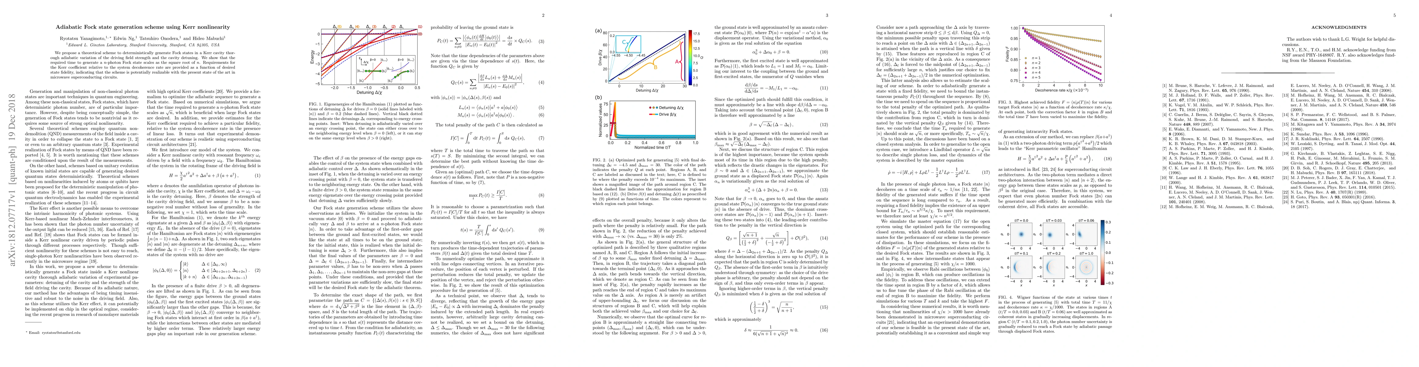 We propose a theoretical scheme to deterministically generate Fock states in a Kerr cavity thorough adiabatic variation of the driving field strength and the cavity detuning. We show that the required time to generate a $n$-photon Fock state scales as the square root of $n$. Requirements for the Kerr coefficient relative to the system decoherence rate are provided as a function of desired state fidelity, indicating that the scheme is potentially realizable with the present state of the art in microwave superconducting circuits.
