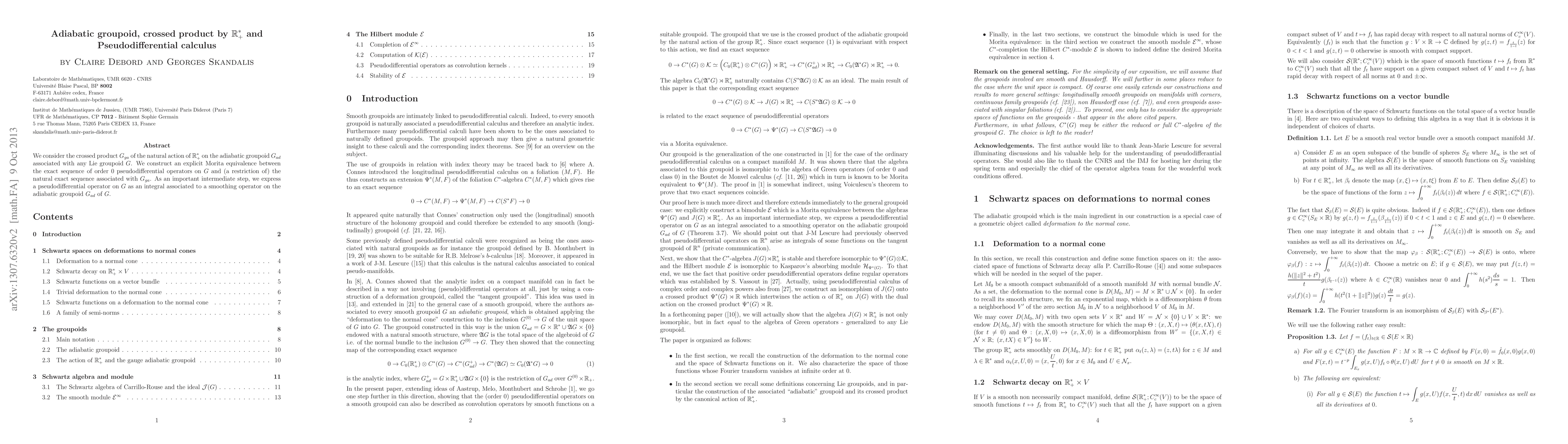 Summary: This paper investigates the crossed product of the adiabatic groupoid $G_{ga}$ by $\R_+^*$, establishing a Morita equivalence between pseudodifferential operators on $G$ and an associated exact sequence. It highlights the integral representation of pseudodifferential operators via smoothing operators on $G_{ad}$.