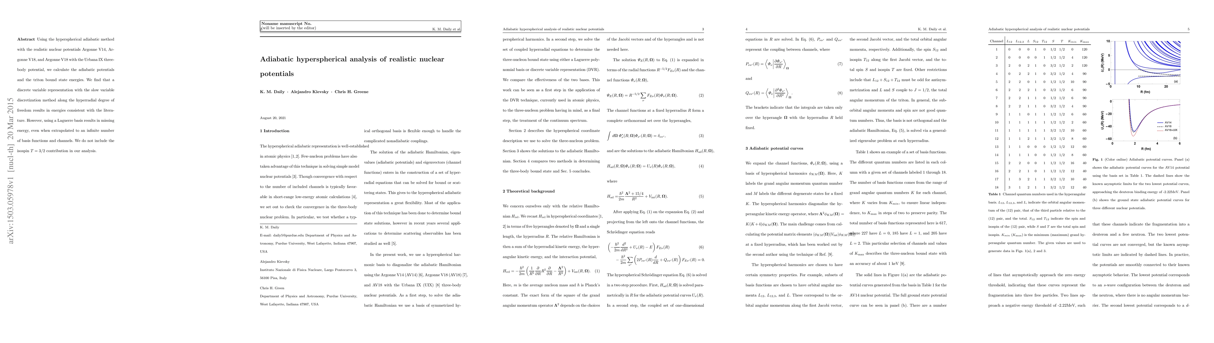 This paper employs the hyperspherical adiabatic method to analyze realistic nuclear potentials, finding consistent triton bound state energies with a discrete variable representation but discrepancies with a Laguerre basis. The study does not consider the isospin $T=3/2$ contribution.