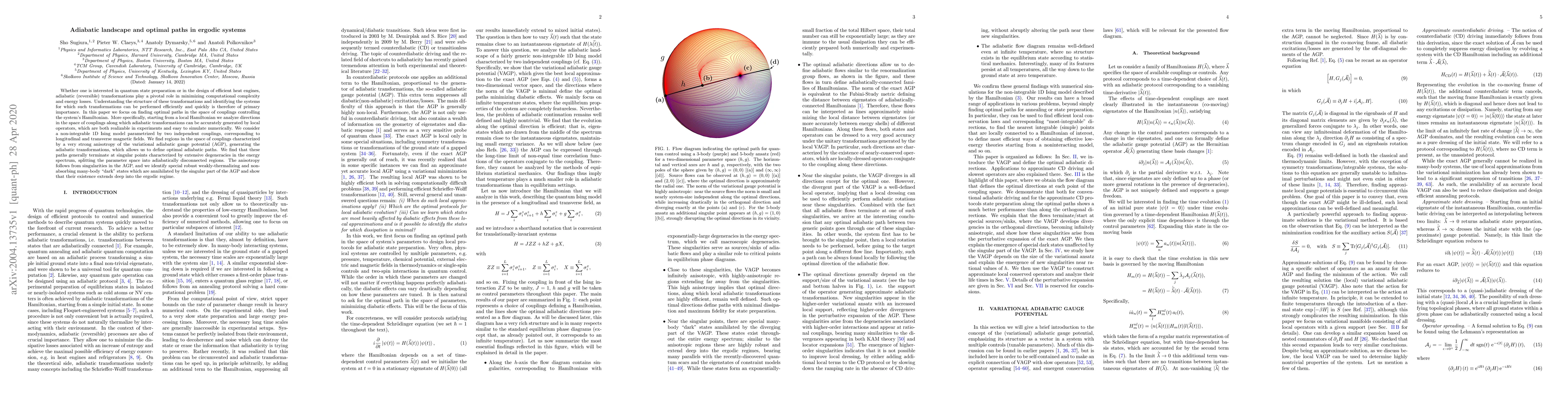 Whether one is interested in quantum state preparation or in the design of efficient heat engines, adiabatic (reversible) transformations play a pivotal role in minimizing computational complexity and energy losses. Understanding the structure of these transformations and identifying the systems for which such transformations can be performed efficiently and quickly is therefore of primary importance. In this paper we focus on finding optimal paths in the space of couplings controlling the system's Hamiltonian. More specifically, starting from a local Hamiltonian we analyze directions in the space of couplings along which adiabatic transformations can be accurately generated by local operators, which are both realizable in experiments and easy to simulate numerically. We consider a non-integrable 1D Ising model parametrized by two independent couplings, corresponding to longitudinal and transverse magnetic fields. We find regions in the space of couplings characterized by a very strong anisotropy of the variational adiabatic gauge potential (AGP), generating the adiabatic transformations, which allows us to define optimal adiabatic paths. We find that these paths generally terminate at singular points characterized by extensive degeneracies in the energy spectrum, splitting the parameter space into adiabatically disconnected regions. The anisotropy follows from singularities in the AGP, and we identify special robust weakly-thermalizing and non-absorbing many-body "dark" states which are annihilated by the singular part of the AGP and show that their existence extends deep into the ergodic regime.