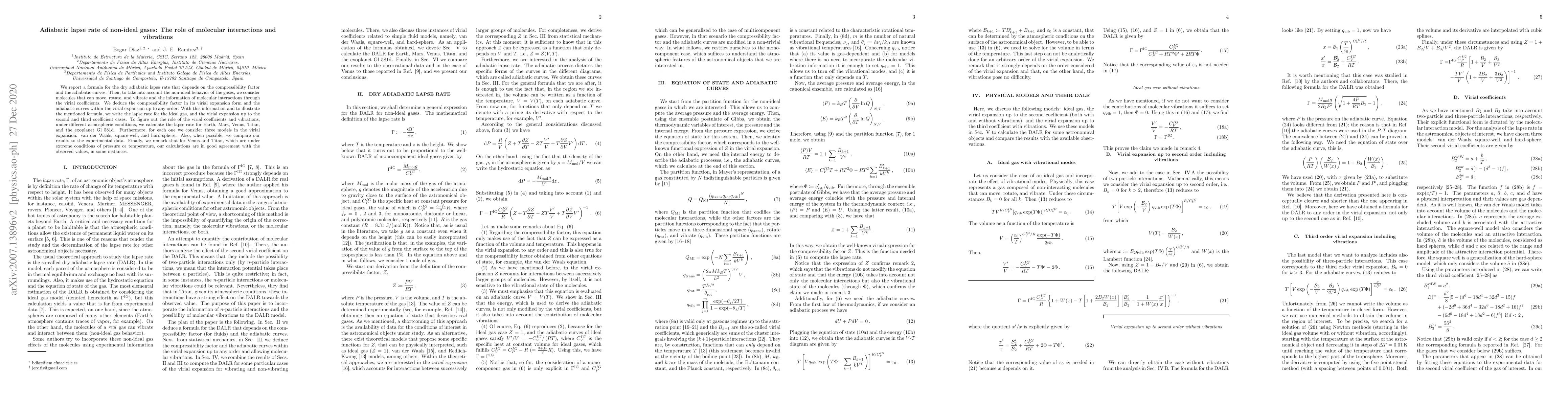 We report a formula for the dry adiabatic lapse rate that depends on the compressibility factor and the adiabatic curves. Then, to take into account the non-ideal behavior of the gases, we consider molecules that can move, rotate, and vibrate and the information of molecular interactions through the virial coefficients. We deduce the compressibility factor in its virial expansion form and the adiabatic curves within the virial expansion up to any order. With this information and to illustrate the mentioned formula, we write the lapse rate for the ideal gas, and the virial expansion up to the second and third coefficient cases. To figure out the role of the virial coefficients and vibrations, under different atmospheric conditions, we calculate the lapse rate for Earth, Mars, Venus, Titan, and the exoplanet Gl 581d. Furthermore, for each one we consider three models in the virial expansion: van der Waals, square-well, and hard-sphere. Also, when possible, we compare our results to the experimental data. Finally, we remark that for Venus and Titan, which are under extreme conditions of pressure or temperature, our calculations are in good agreement with the observed values, in some instances.