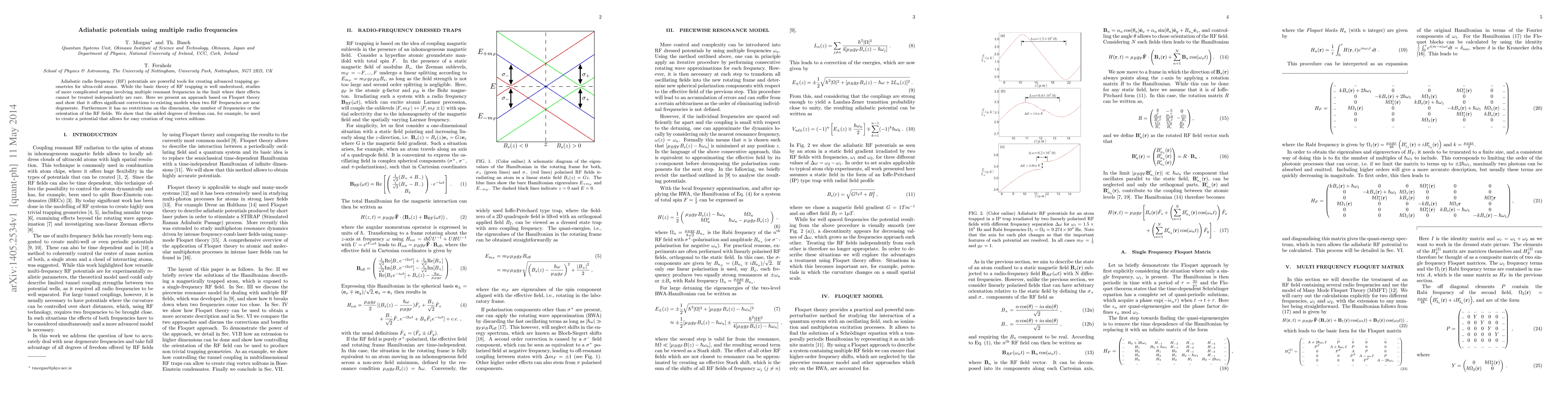 This paper introduces a novel approach using Floquet theory to model adiabatic radio frequency potentials for trapping ultra-cold atoms, especially when multiple frequencies are involved. It reveals significant corrections to existing models and enables the creation of advanced trapping geometries, such as ring vortex solitons.
