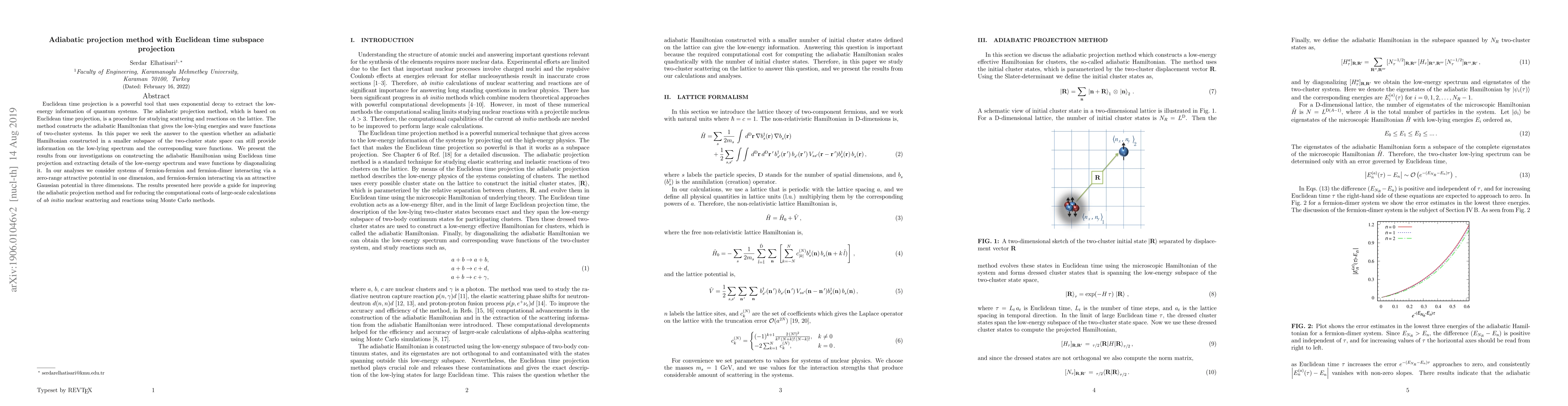 Euclidean time projection is a powerful tool that uses exponential decay to extract the low-energy information of quantum systems. The adiabatic projection method, which is based on Euclidean time projection, is a procedure for studying scattering and reactions on the lattice. The method constructs the adiabatic Hamiltonian that gives the low-lying energies and wave functions of two-cluster systems. In this paper we seek the answer to the question whether an adiabatic Hamiltonian constructed in a smaller subspace of the two-cluster state space can still provide information on the low-lying spectrum and the corresponding wave functions. We present the results from our investigations on constructing the adiabatic Hamiltonian using Euclidean time projection and extracting details of the low-energy spectrum and wave functions by diagonalizing it. In our analyses we consider systems of fermion-fermion and fermion-dimer interacting via a zero-range attractive potential in one dimension, and fermion-fermion interacting via an attractive Gaussian potential in three dimensions. The results presented here provide a guide for improving the adiabatic projection method and for reducing the computational costs of large-scale calculations of \emph{ab initio} nuclear scattering and reactions using Monte Carlo methods.