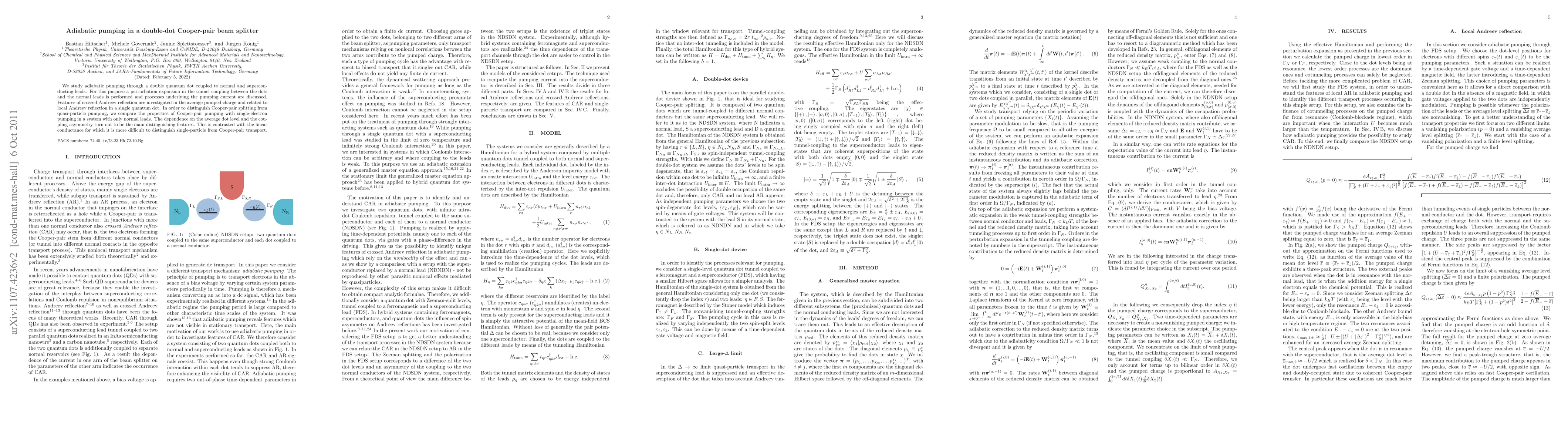 Summary: This research investigates adiabatic pumping through a double-dot Cooper-pair beam splitter, highlighting the differences between Cooper pair and single-electron pumping. It focuses on the role of crossed Andreev reflection and coupling asymmetry, distinguishing these processes based on average pumped charge and linear conductance.