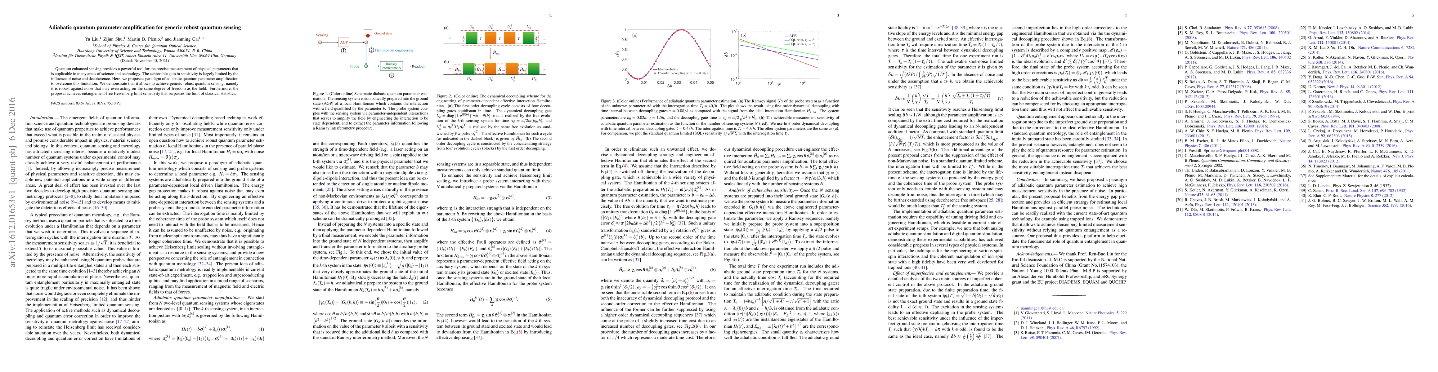 This paper proposes an adiabatic quantum parameter amplification technique to enhance the sensitivity of quantum sensing, achieving robust performance against noise and surpassing classical statistical limits through entanglement-free Heisenberg limit sensitivity.
