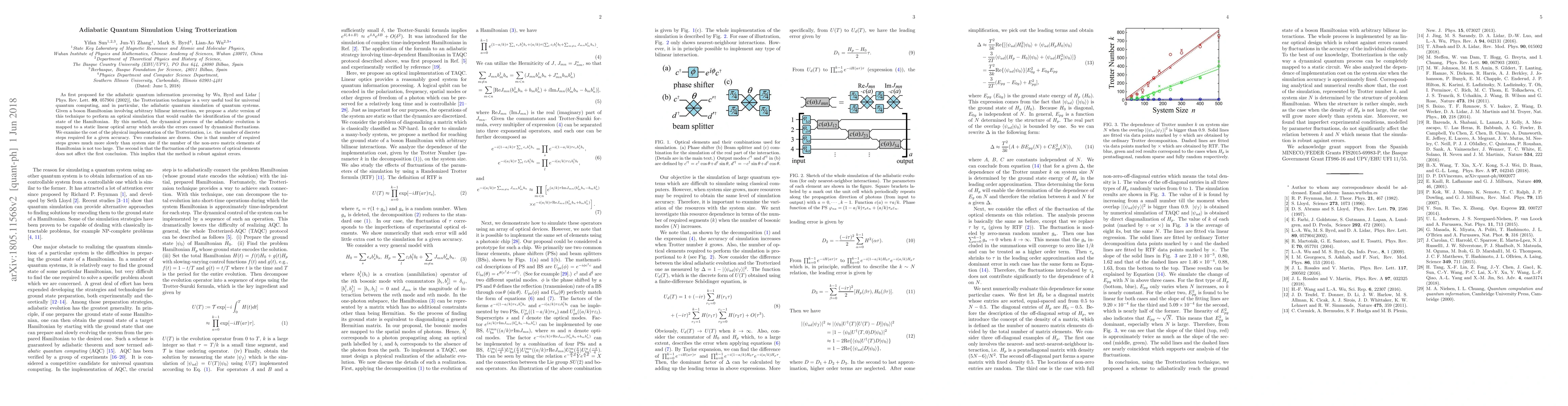 This paper proposes a static version of Trotterization for adiabatic quantum simulation, enabling optical identification of Hamiltonian ground states. It finds that the required number of steps grows slowly with system size, and the method remains robust against parameter fluctuations.