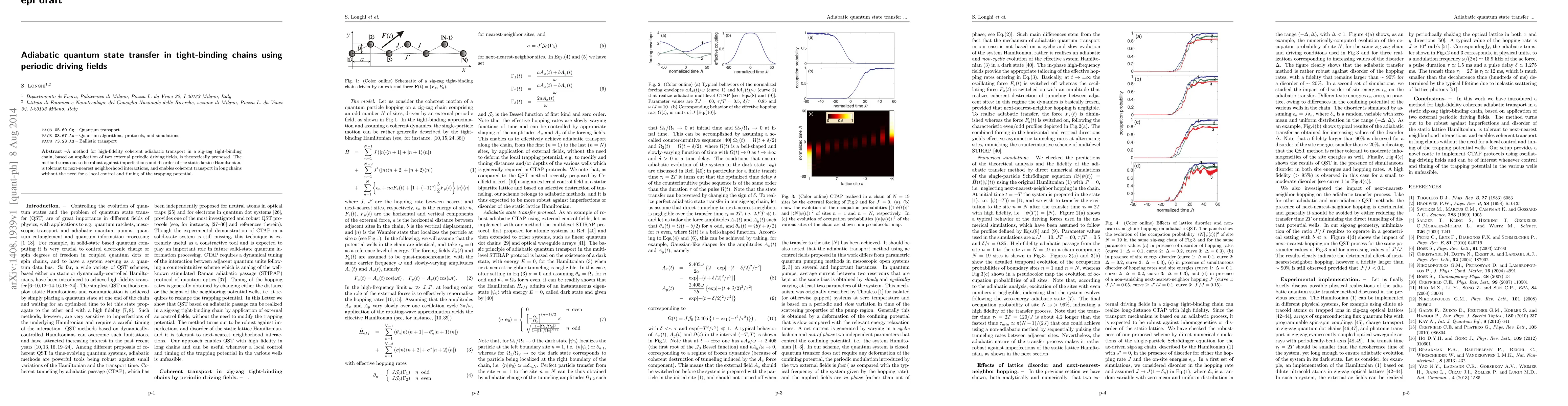 Researchers propose a method for efficient adiabatic quantum state transfer in zig-zag tight-binding chains using two periodic driving fields, robust against imperfections and disorder.