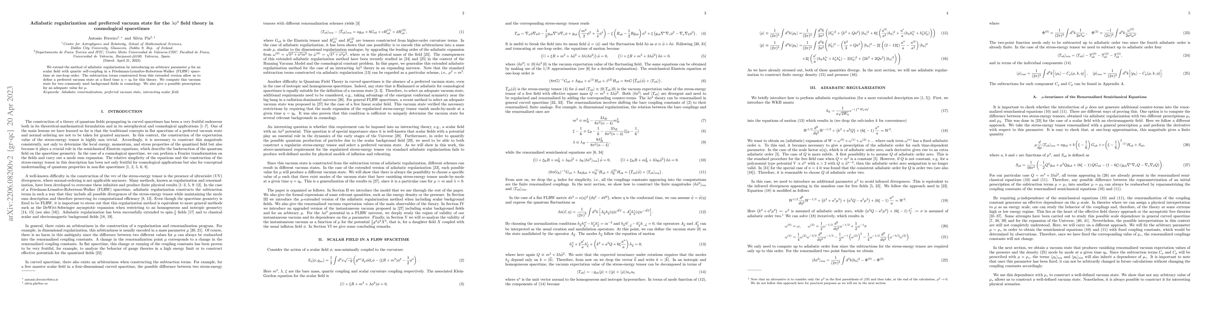 This paper introduces an extended adiabatic regularization method with a parameter $\mu$ for $\lambda \phi^4$ field theory in FLRW spacetime, defining a preferred vacuum state at a fixed time $\eta_0$. It computes this state for common cosmological background fields and suggests a prescription for determining $\mu$.